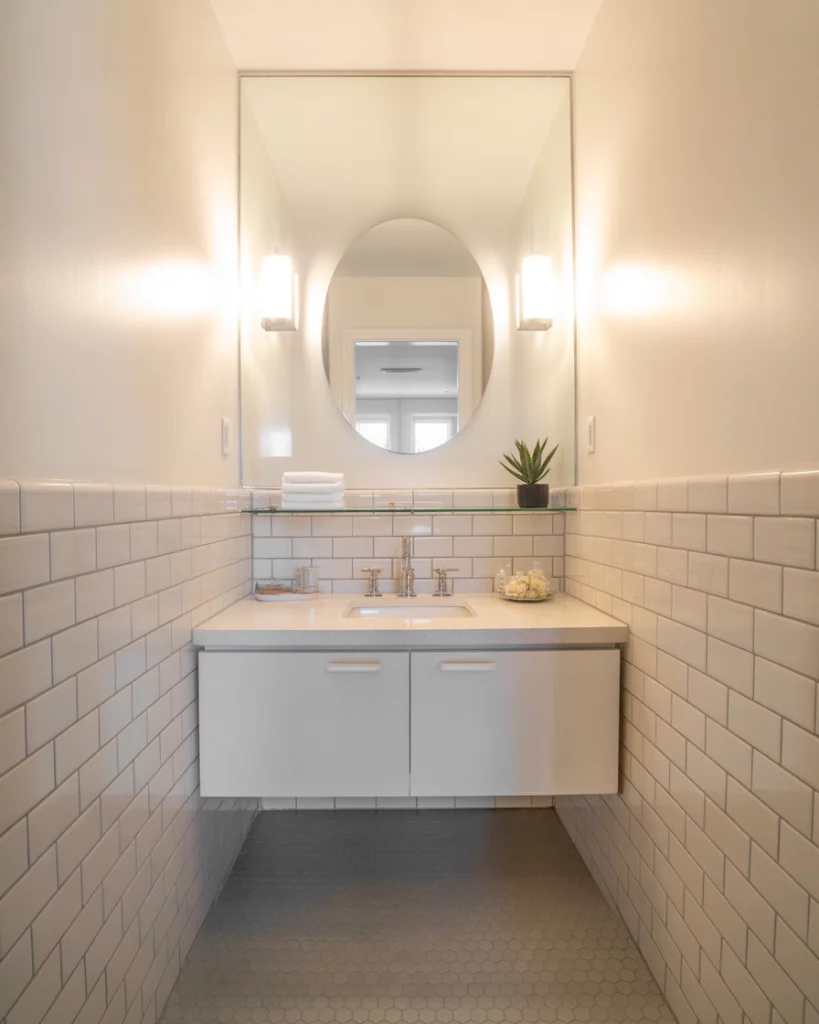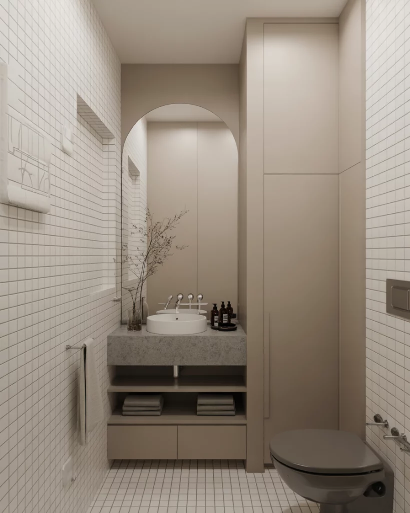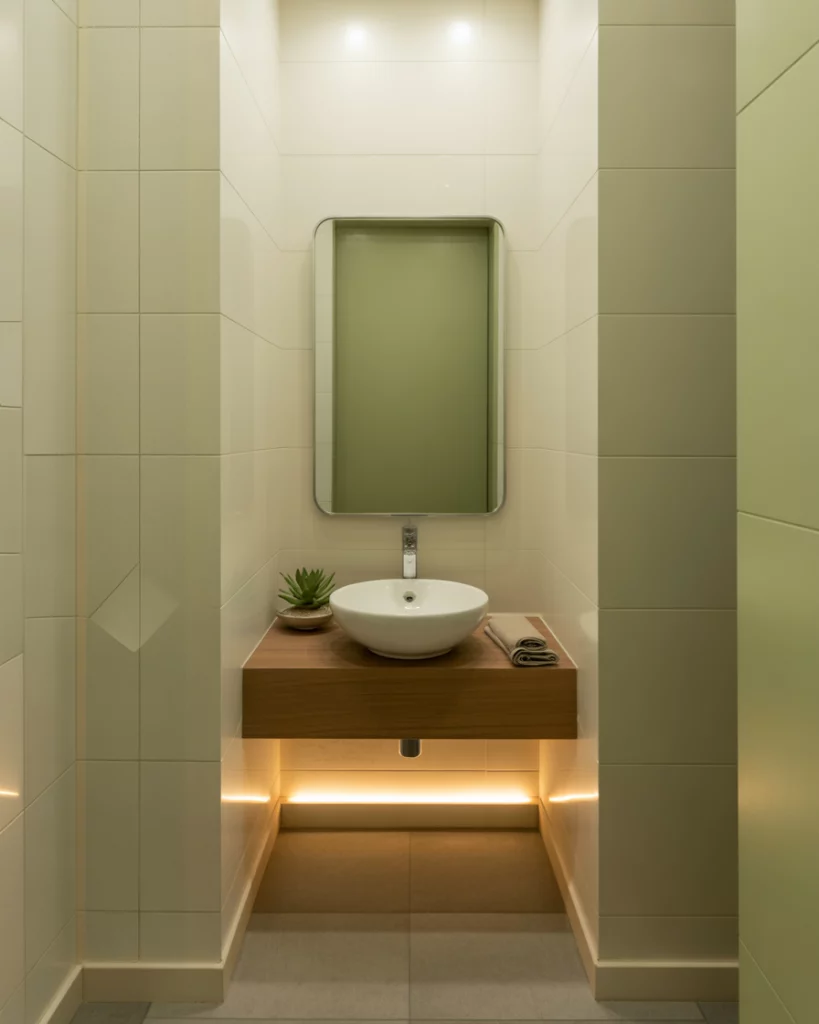 A tiny guest bathroom can still feel generous with strategic fixtures and smart decor. Floating vanities, mirrored cabinets, and pale colors open up the room without renovation. In my first apartment, this trick made our pocket-sized bath feel like a “real” room guests appreciated.