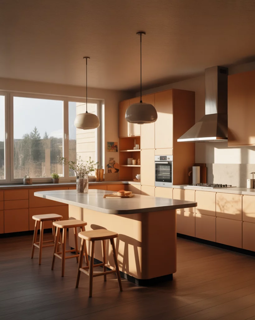 For compact homes, a narrow island can transform the room without overwhelming it. Its streamlined footprint provides essential prep space and a bit of extra seating for small space living. Pair it with modern finishes to keep things visually light while still boosting utility. Narrow islands often require fewer materials and simpler fabrication, making them a cost-friendly upgrade compared to full-size installations. Even modest DIY modifications can deliver a big-space feel on a smaller investment.