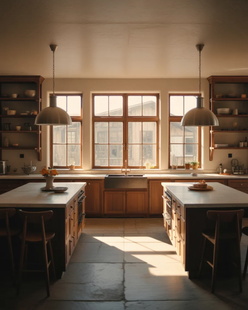 A double-island setup is ideal for households that cook often or entertain weekly. The configuration separates tasks—one for prep, one for serving—with ample room for bar stools and cleverly hidden storage. In more spacious kitchens, it turns everyday routines into a smoother, more defined flow. Double islands shine in large, open homes—think suburban builds with generous footprints or renovated farmhouses with combined kitchen-dining areas. The separation of zones keeps big gatherings from feeling chaotic.