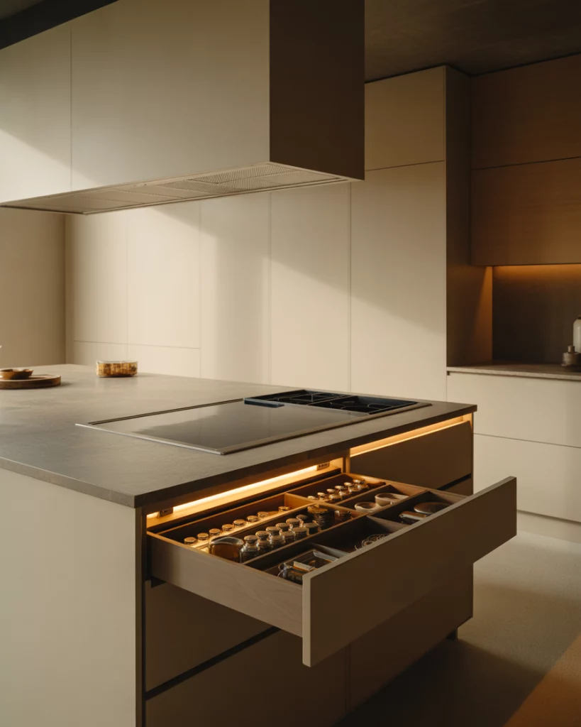 A modular island system adapts as your needs change, making it ideal for evolving households. Components can shift to create extra seating or accommodate new storage needs. Clean, modern shapes keep the look cohesive even when rearranged. As more people shift between remote work and family routines, flexible kitchen layouts let the space serve as an office, homework station, and cooking zone without a remodel.