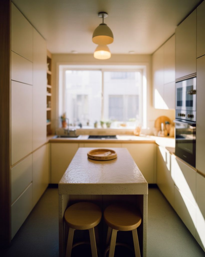 For compact homes, a narrow island can transform the room without overwhelming it. Its streamlined footprint provides essential prep space and a bit of extra seating for small space living. Pair it with modern finishes to keep things visually light while still boosting utility. Narrow islands often require fewer materials and simpler fabrication, making them a cost-friendly upgrade compared to full-size installations. Even modest DIY modifications can deliver a big-space feel on a smaller investment.