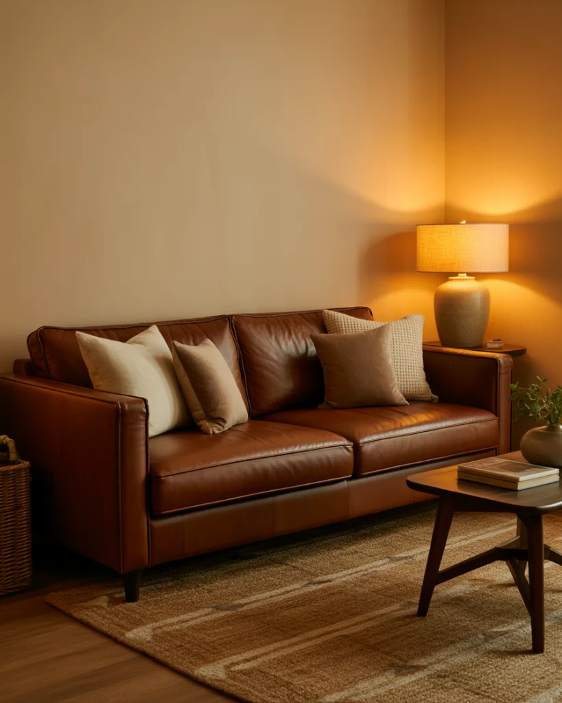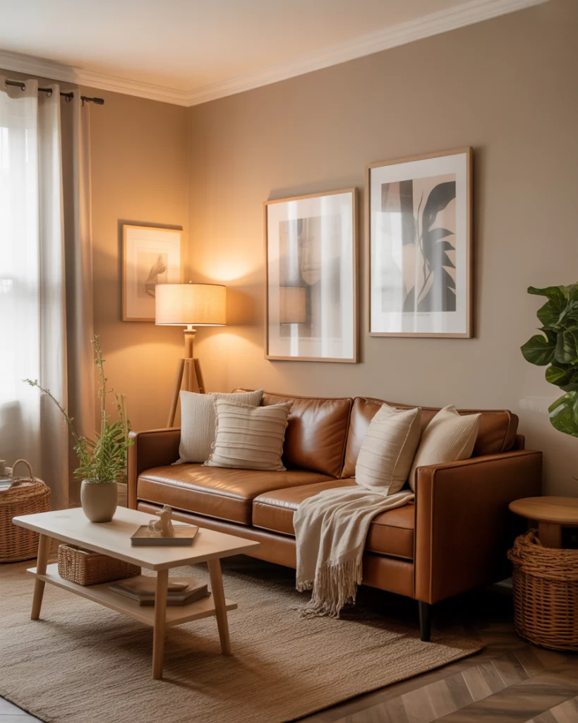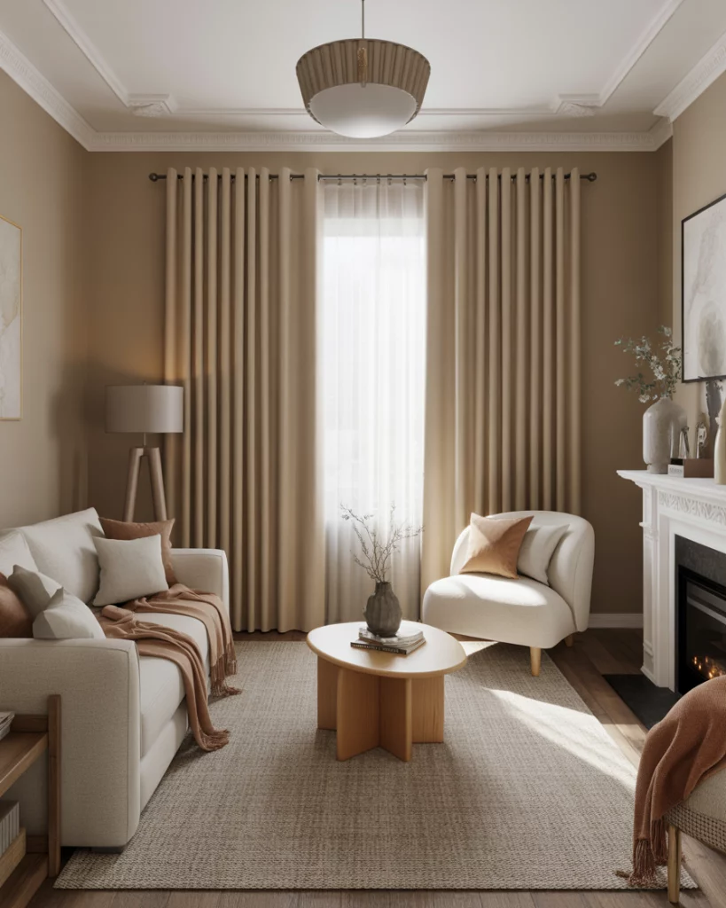 Many designers are saying that in 2026 we’ll see neutral walls that are anything but boring—think deeper, warmer off-whites, sandy tones, and soft taupe. These become the backdrop for a living room rather than a blank canvas. The appeal of such a foundation is that it allows you to build on mood and texture, making the space feel cozy yet sophisticated. Pairing this base with accent pieces like a brown couch or rustic wood furniture works beautifully. For example, a combination of warm wall tones with soft white trim and natural fiber rugs gives you a timeless scheme idea that’s easy to live with.