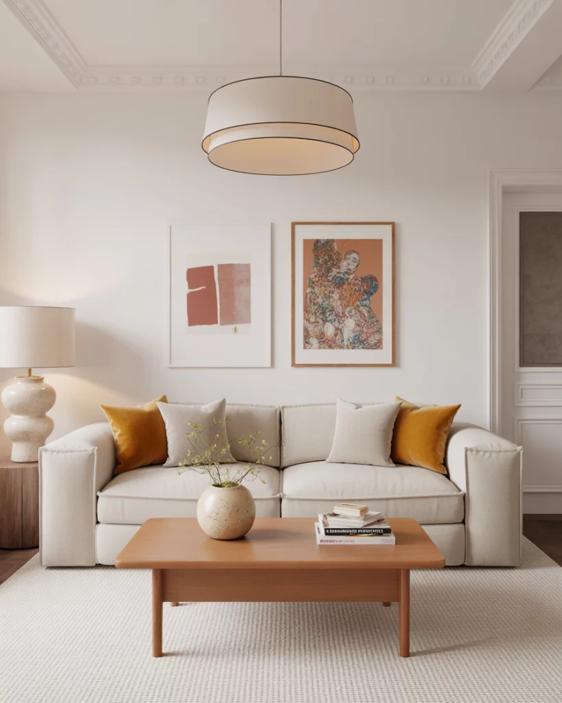 If you love a combination white wall but don’t want sterility, 2026 brings a renewed focus on art-driven interiors. A crisp white backdrop allows your furniture and artwork to shine, turning your living space into a personal gallery. Use this scheme idea to highlight colorful pillows, rugs, or canvases while keeping the space open. It’s a perfect match for minimalists who still crave personality.
