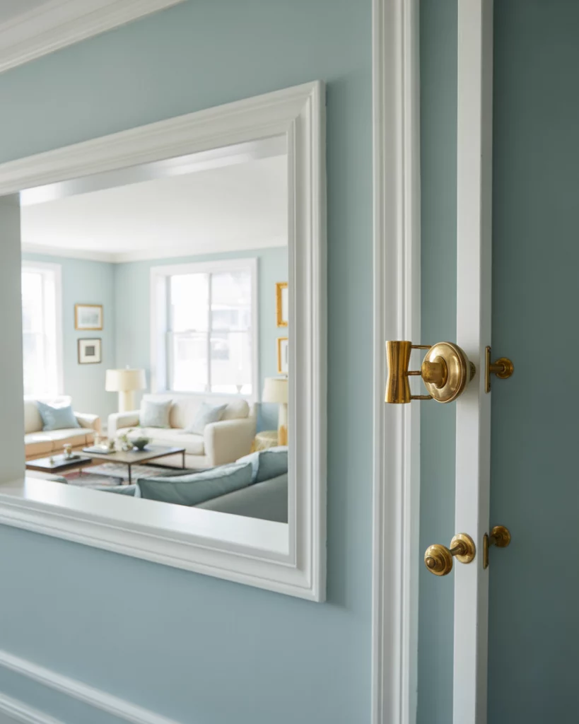 If you’re craving color but want to keep things calm, consider a dusty blue wall palette with crisp white trim. This combination offers a peaceful atmosphere that works especially well in a living space adjoining an open-concept kitchen. A scheme idea might be dusty blue walls, bright white ceiling and moldings, and accents in brushed brass or matte black. These palette ideas help the room feel both fresh and grounded. I recently visited a friend’s home where they painted one wall dusty blue and left the other walls near-white—instantly the room felt calmer and more cohesive than the stark white they had previously.