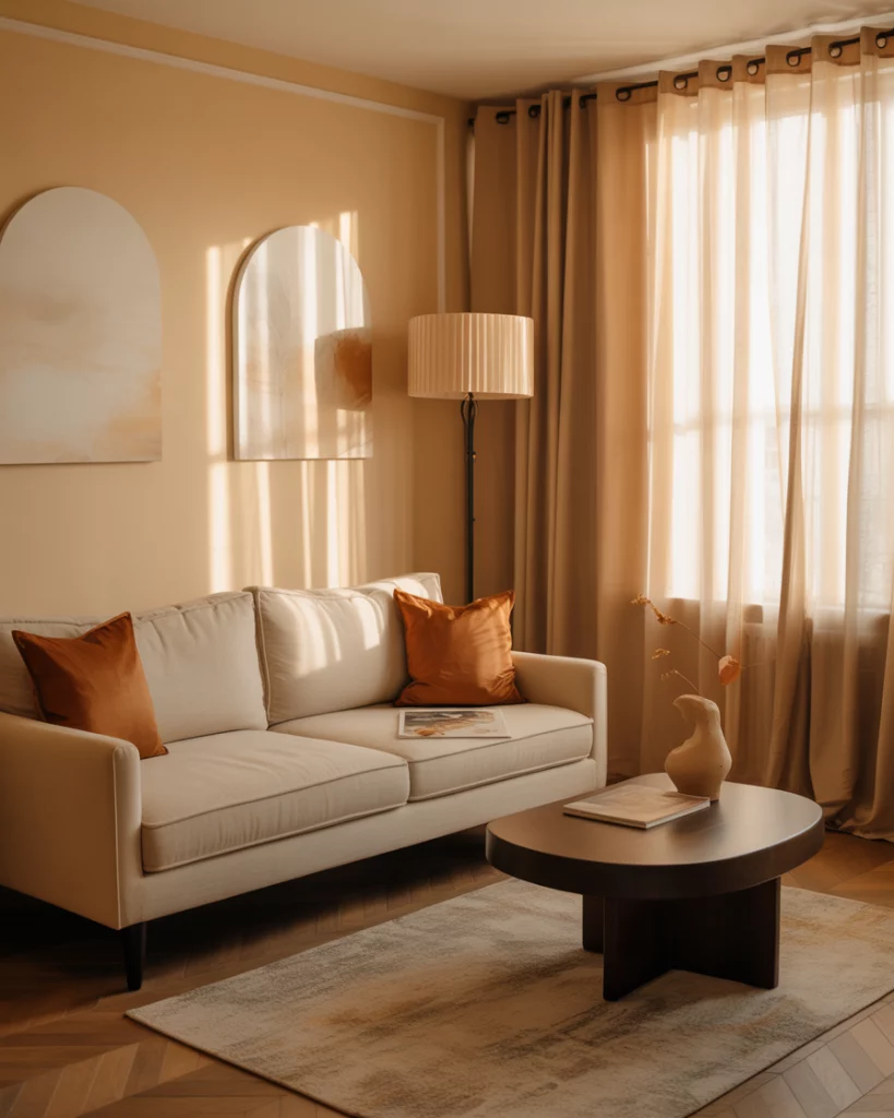 If you’re after softness, try combination white wall tones paired with creamy caramel accents—think cushions, throws, or curtains. This scheme idea brings harmony to modern living rooms while keeping things light and airy. The palette combines gentle neutrals with a touch of sweetness, creating a cozy yet refined mood. Interior decorators suggest it’s an easy transition color for 2026 as people seek understated comfort.