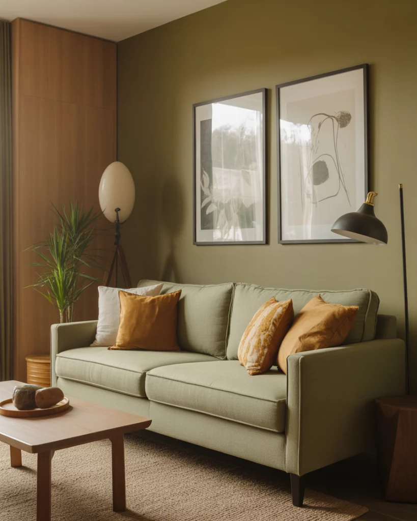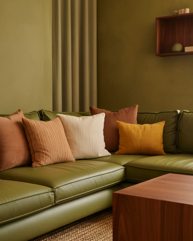 Color trends are now naming earth-inspired shades of green/khaki colors among the “winners” of 2026 colors. As an example, a leading brand of paint chose a shade named “Universal Khaki” to represent their colors of 2026. Paint an olive or khaki color on your walls, and you will have a natural and healing color scheme, perfect as a living space decoration, as this is a region you want to unwind and entertain your guests. One example of a color scheme: Olive or khaki walls, a slim grey sofa, wood, and deep-colored accent pillows will create a sophisticated space that is cozy as well.