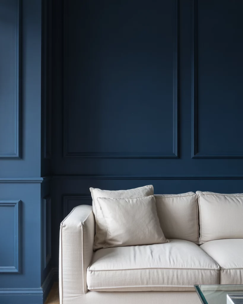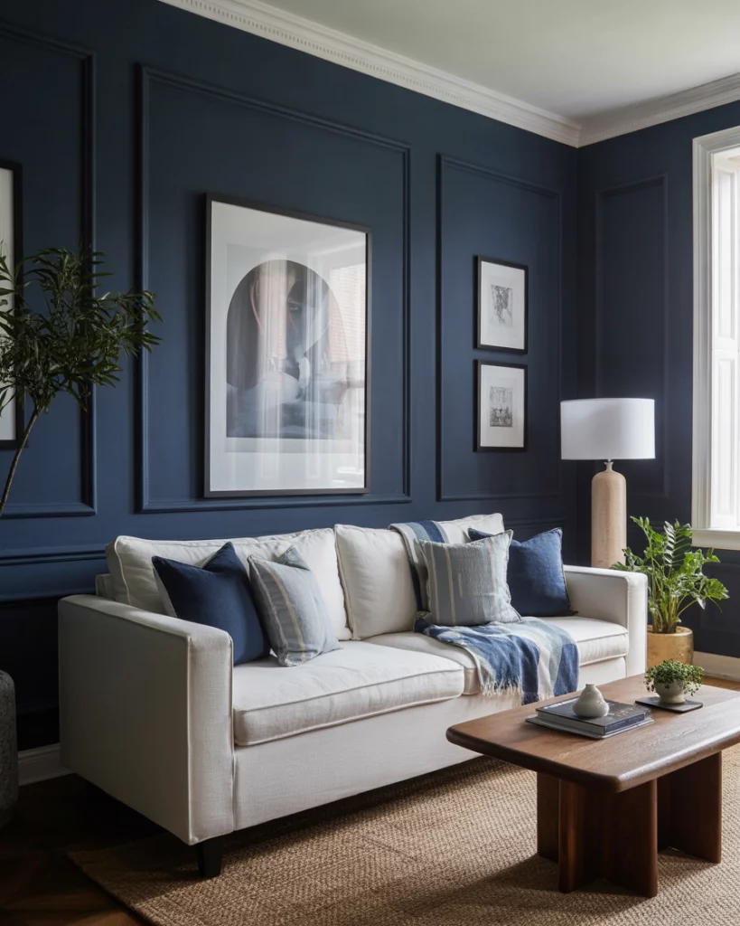9. Deep Navy Walls With Light Furnishings for Contrast