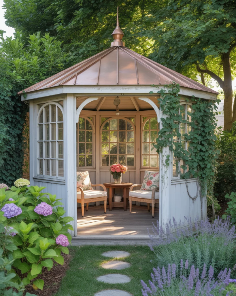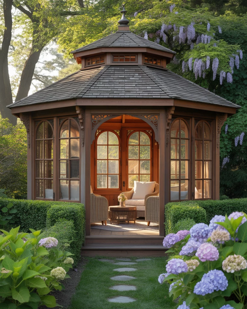 A small outdoor enclosed gazebo can transform into a peaceful reading nook. Use glass or screened walls to block bugs while letting in sunlight. Fill it with a cozy chair, small shelves, and a blanket for ultimate relaxation. It’s simple, charming, and works even in a cheap budget setup. I built one for my mother, and it quickly became her favorite spot for morning coffee and novels.