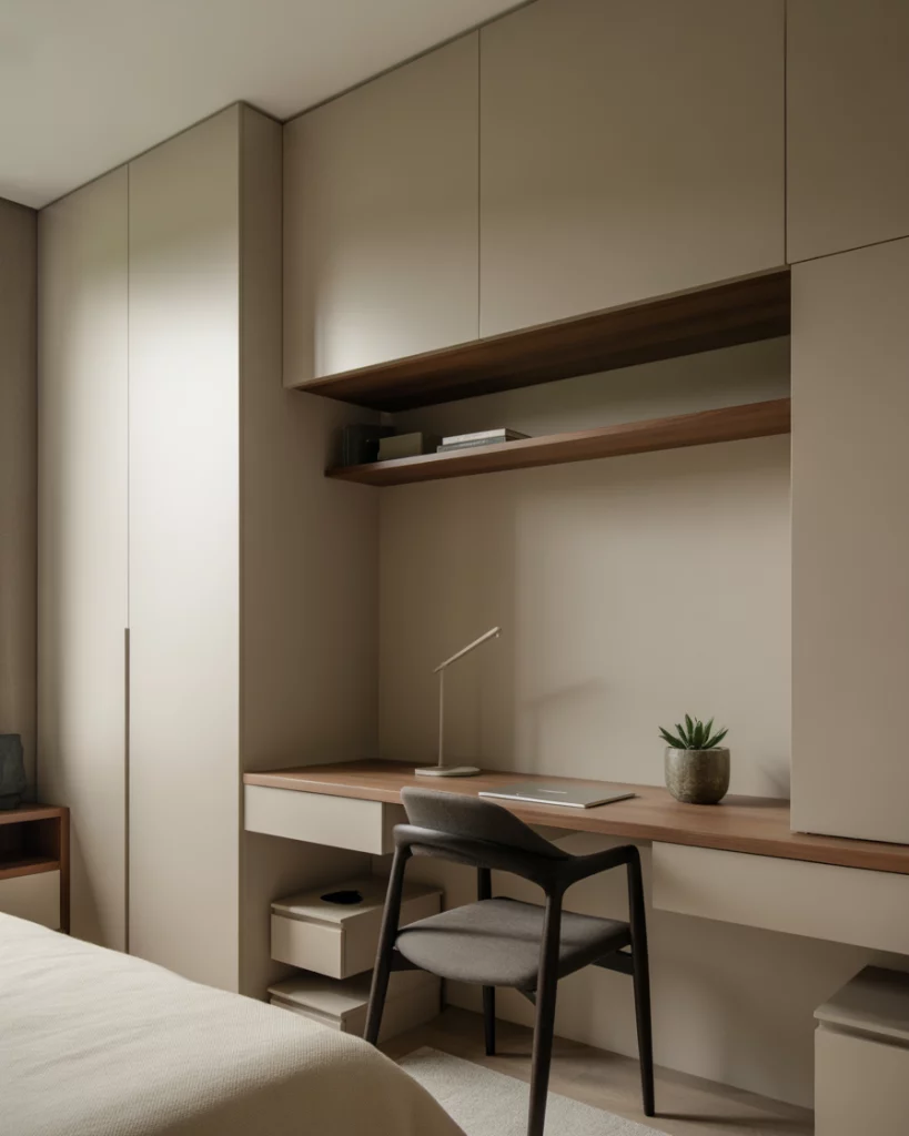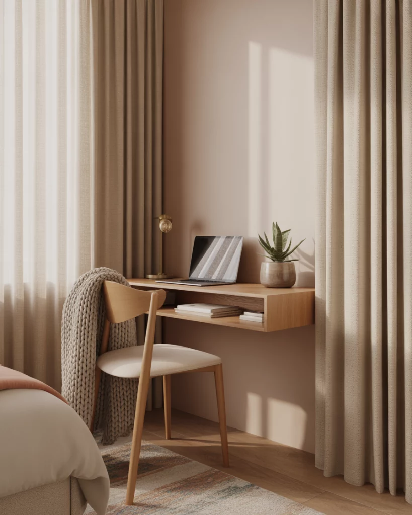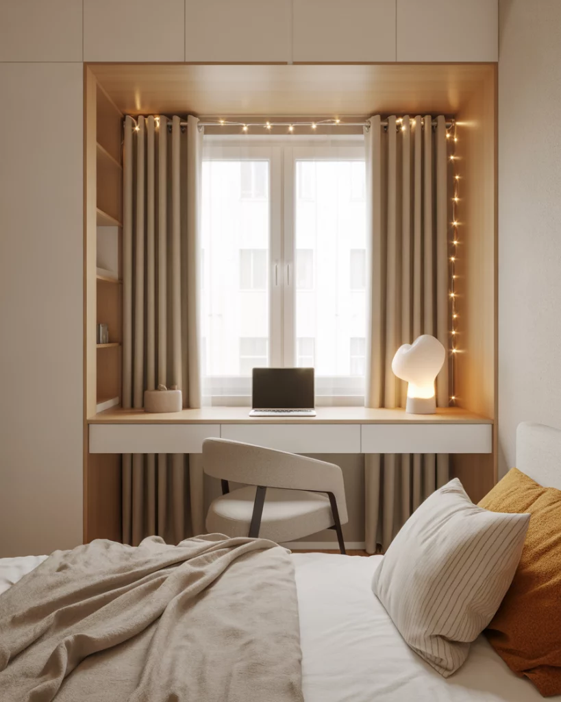 Turning your bedroom corner into a chic office is one of the most popular ideas for hybrid workers. Use slim desks, warm lamps, and layered fabrics to keep the area cozy and visually distinct from your sleeping zone. Neutral hues and simple storage help maintain balance. Interior inspiration from Apartment Therapy shows how to make multifunctional bedrooms feel spacious.