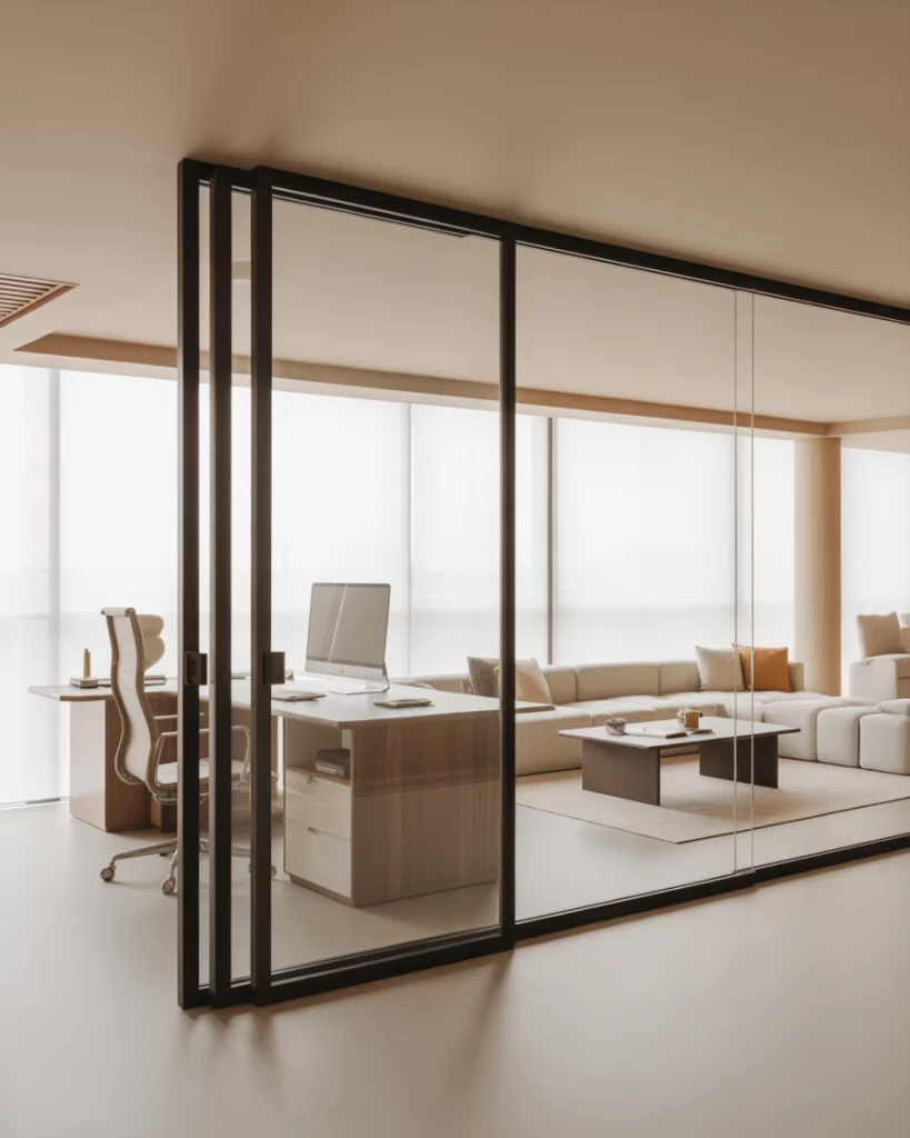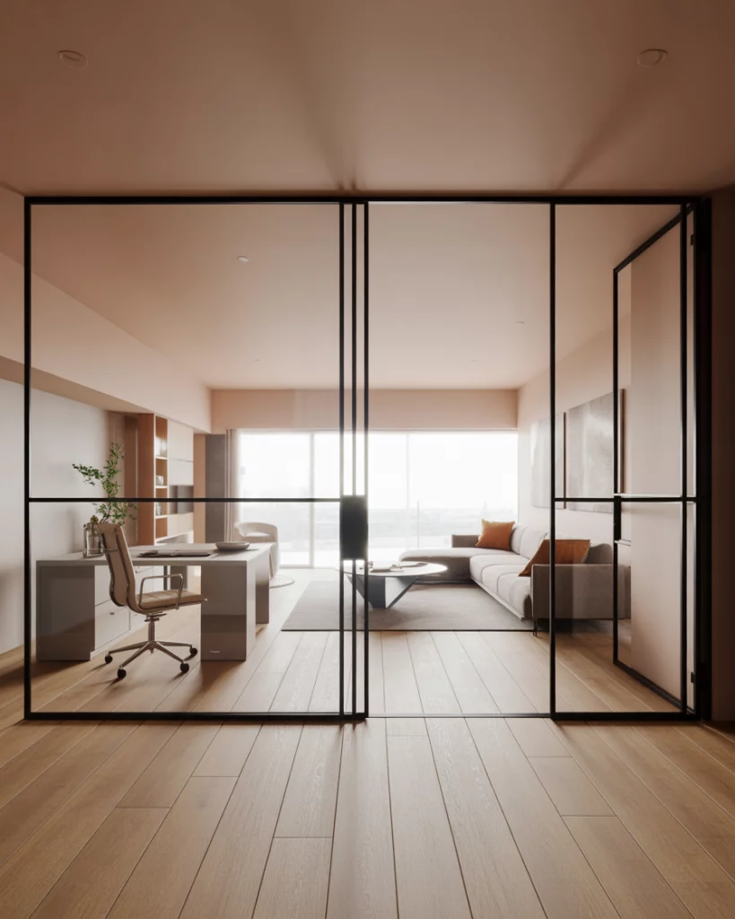 The open-concept home office blends seamlessly into shared living areas. It’s ideal for apartments or homes without spare rooms. Use low shelving or glass partitions to define your workspace without closing it off. This approach feels modern, simple, and professional, yet it maintains connection to the rest of the home. Designers like Joanna Gaines have shown how an integrated office can feel intentional rather than improvised.