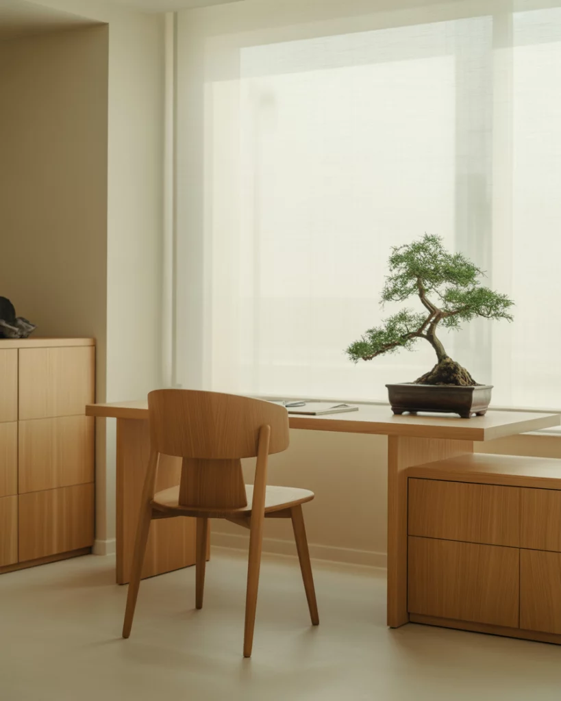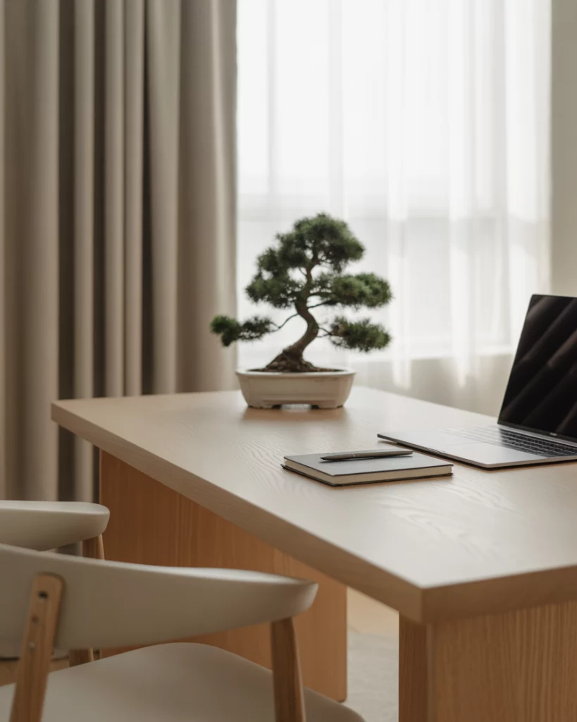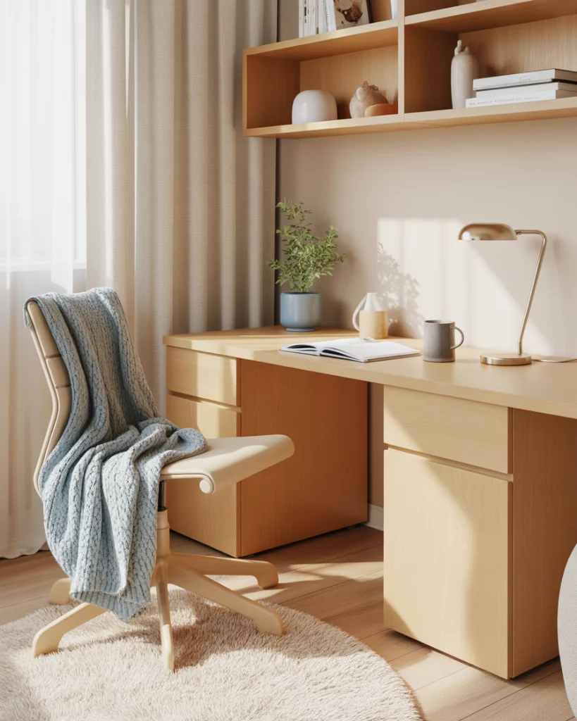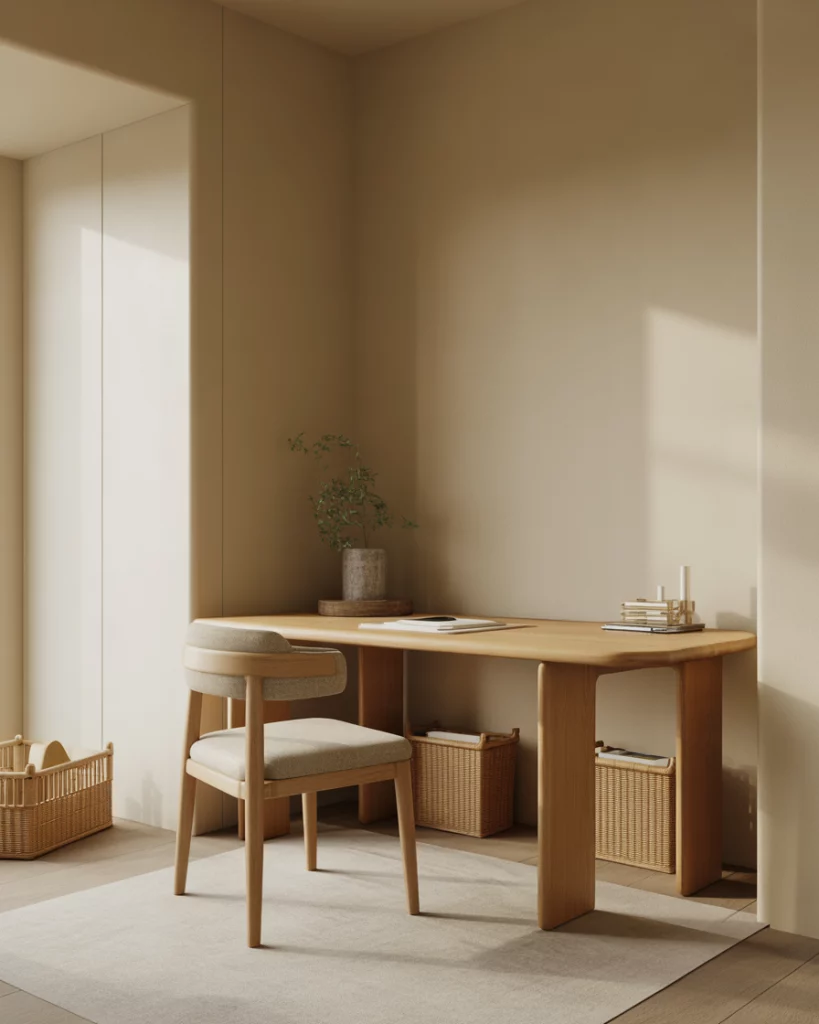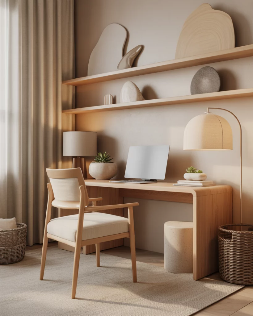 Japandi merges Japanese zen and Scandinavian minimalism—resulting in a minimal yet warm interior. In your study area, choose neutral palettes, organic materials like bamboo and linen, and simple forms. The style suits a small space or shared room, creating calm and professional vibes in equal measure. Designers like Nendo and Muji-inspired interiors have championed this fusion.