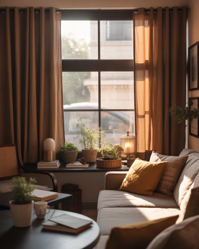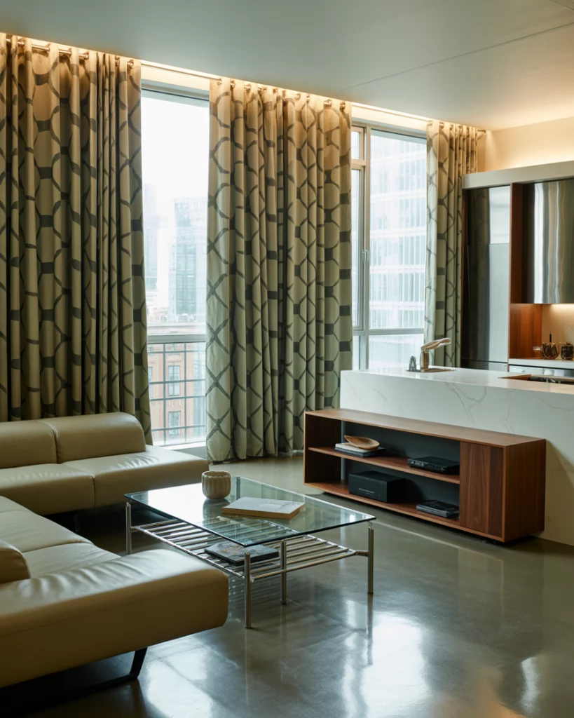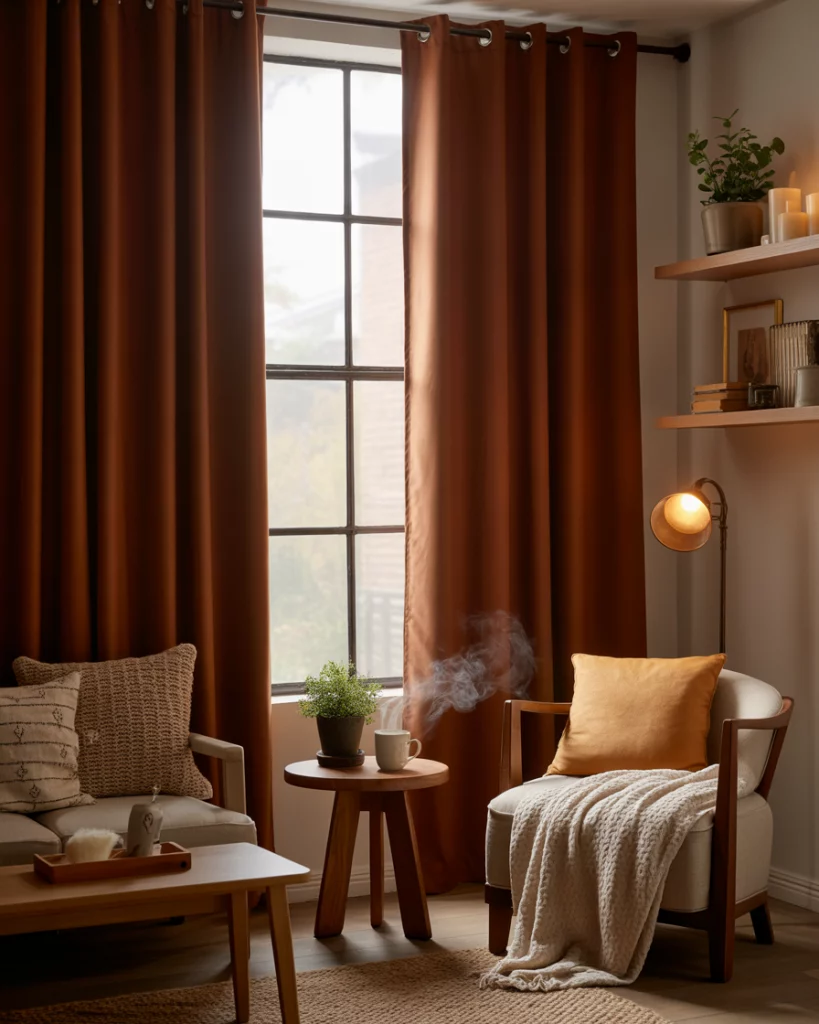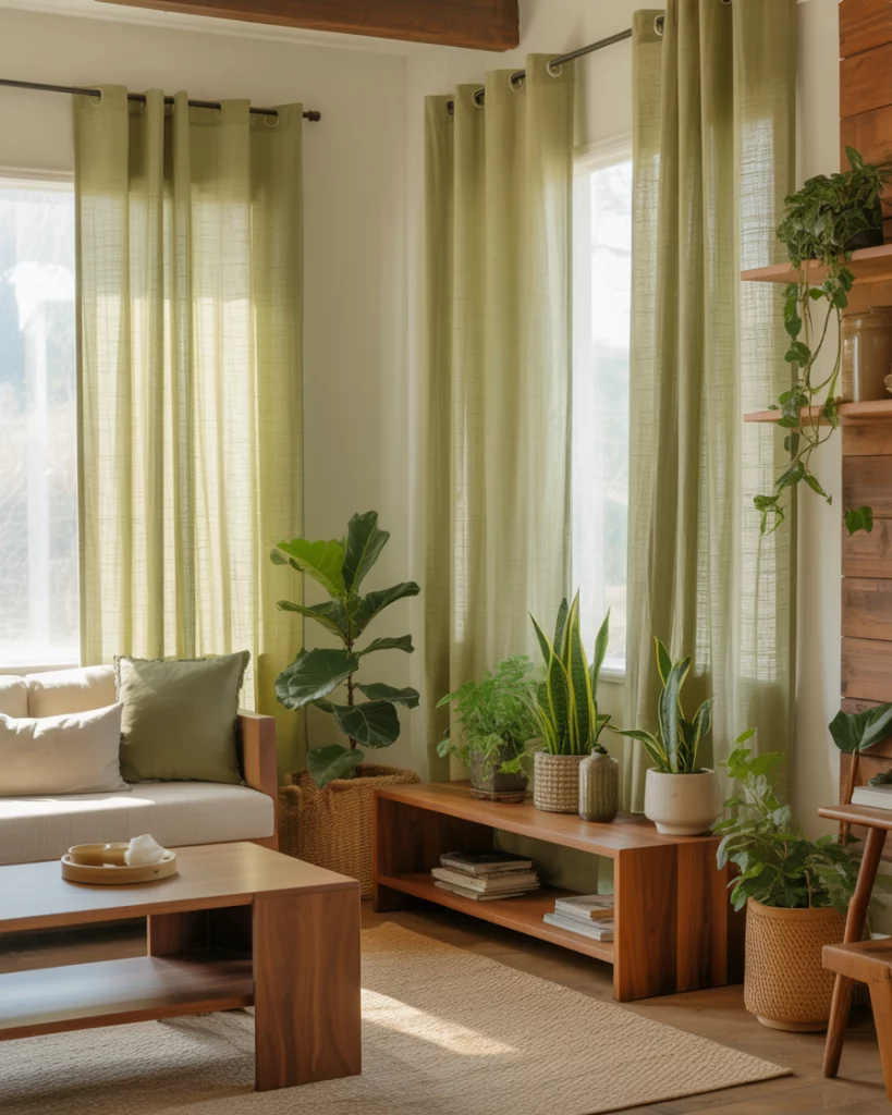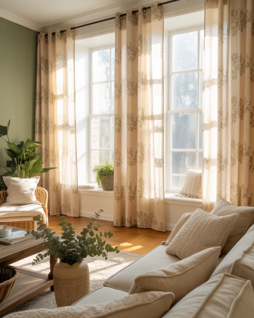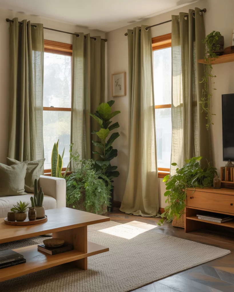 Bringing the outdoors in never felt more relevant than now. With the trend toward green tones in interiors for 2026, selecting curtains in a muted sage or moss green creates a connection with nature and nurtures a relaxed mood. In a comfortable lounge space, this soft green can act as a new neutral—pair it with wood furniture and plants for an organic aesthetic. The fabric could be a light linen blend, offering texture without heaviness.
