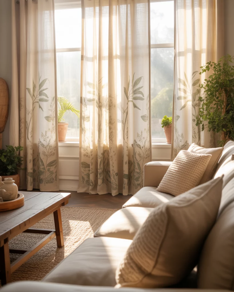 Floral curtains are making a return in 2026, particularly those with soft botanical prints and muted green tones. They bring personality and an aesthetic sensibility to otherwise plain living rooms. Choose lightweight linen or cotton to let sunlight highlight the prints. Just the thing for anyone looking for a space that feels lived-in, warm, and beautifully elegant by nature.