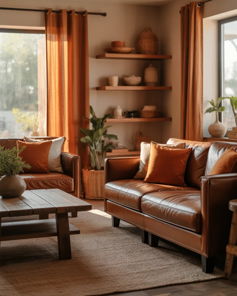 Brown and orange curtains will provide a vintage appearance that will benefit any home that wants to project a cozy, fall-sweet aesthetic that’s both vintage-like in its feel and modern at the same time. This combination of brown and orange will provide a homey atmosphere that’s perfect for any fall decor that’s mixed along with wood furniture and earthy accents.