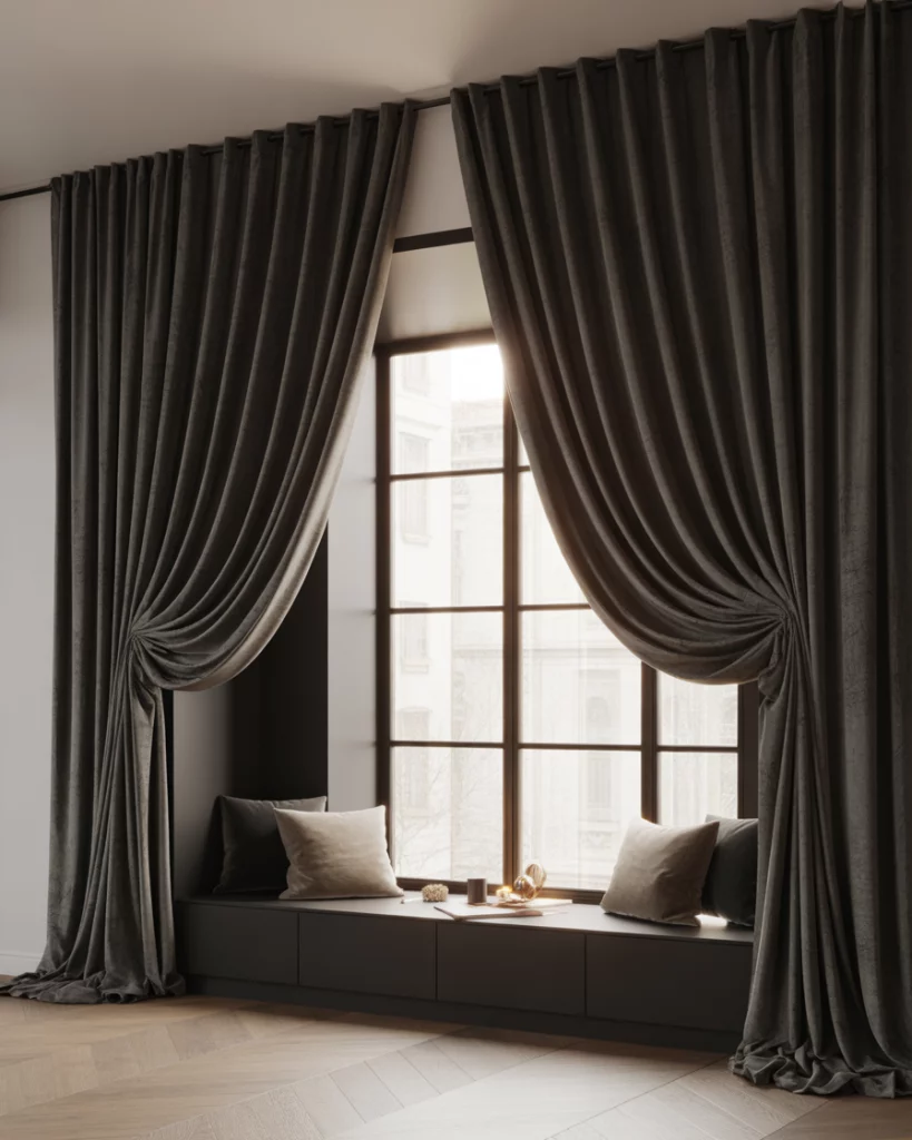 Although grey tends to prevail, for the year 2026, incorporation of warmer, darker versions of the color grey along with velvet textures can provide better elegance for homes. For any home’s actual living room, featuring dark gray velvet window treatments paired with tall windows or bay windows will provide homes the much-needed aristocracy look without its flashiness, only bold, stunning, and eye-catching, serving perfectly well as home decorative elements.