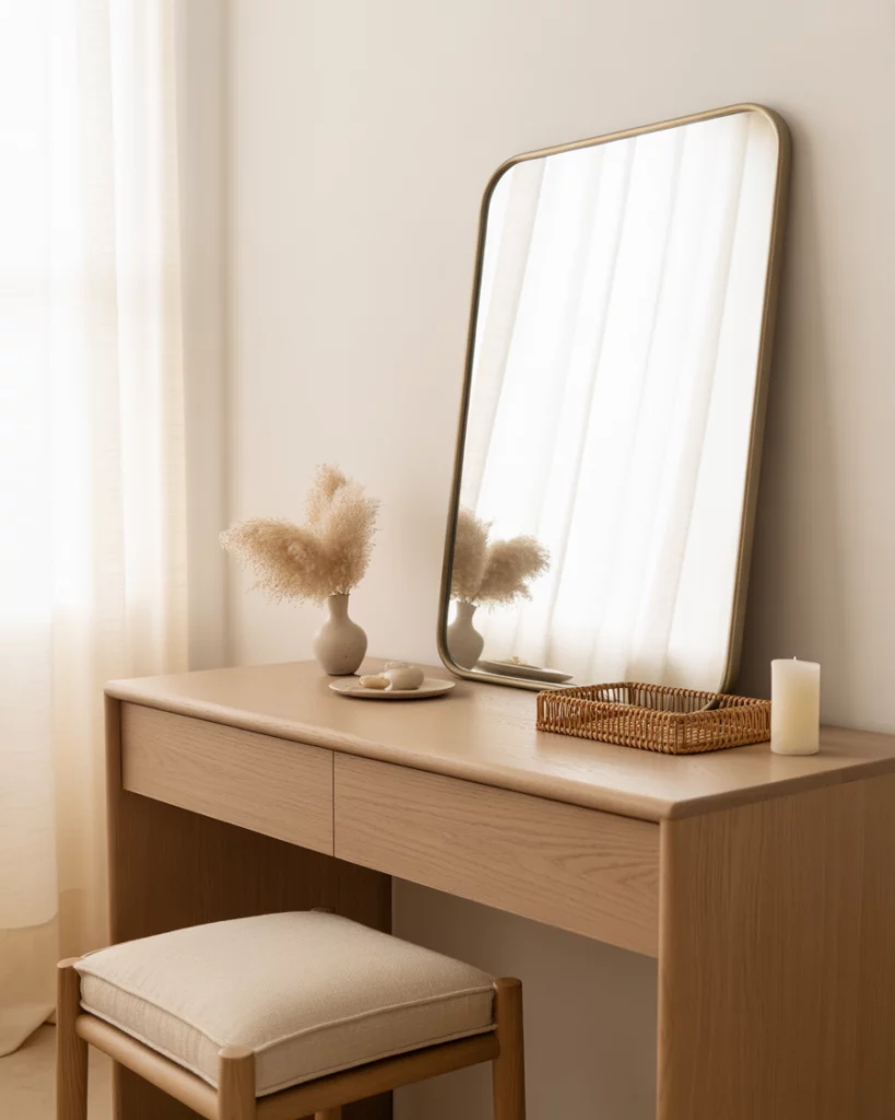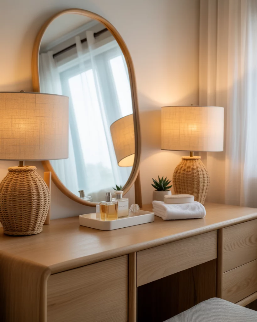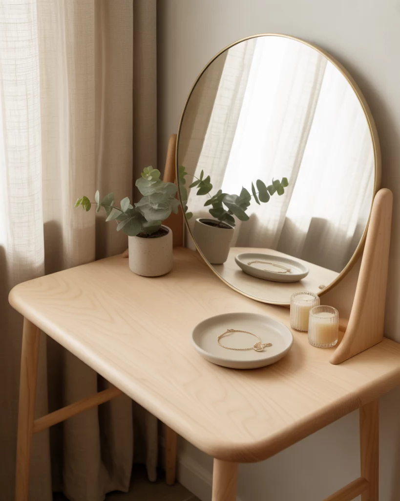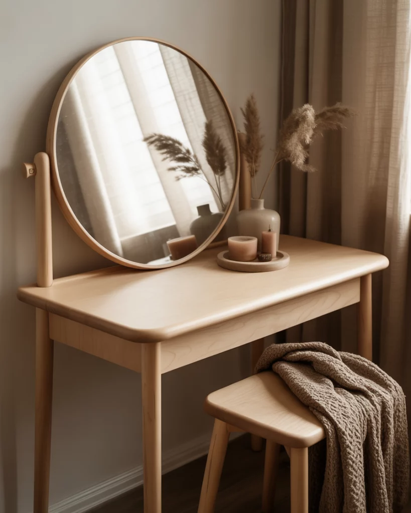 17. Scandinavian Cozy Vanity With Soft Wood Tones