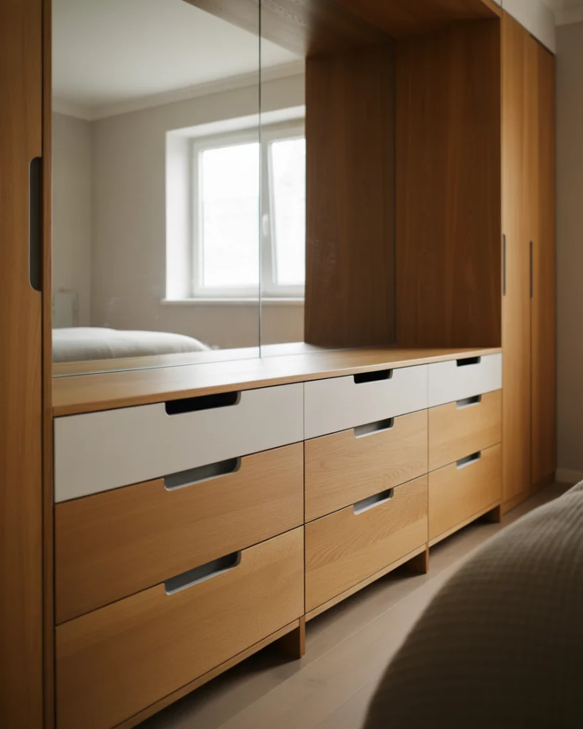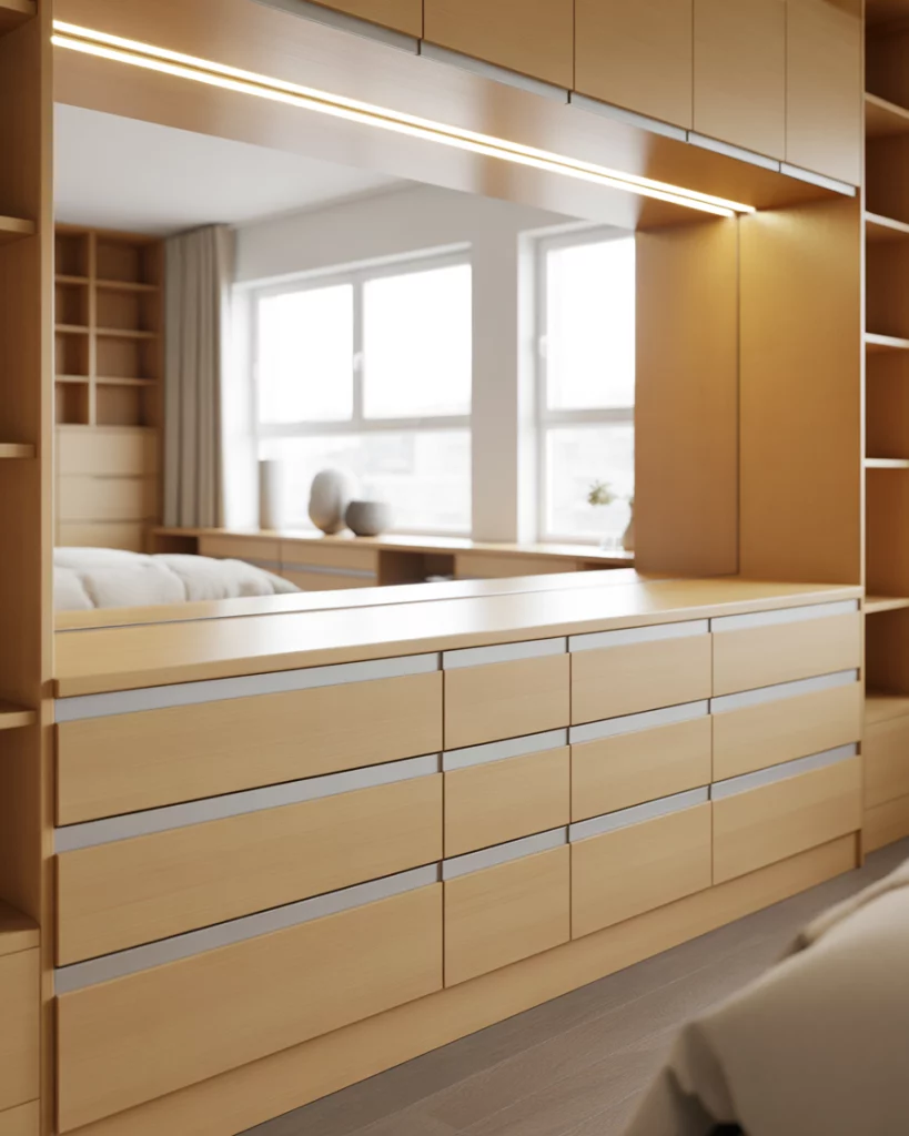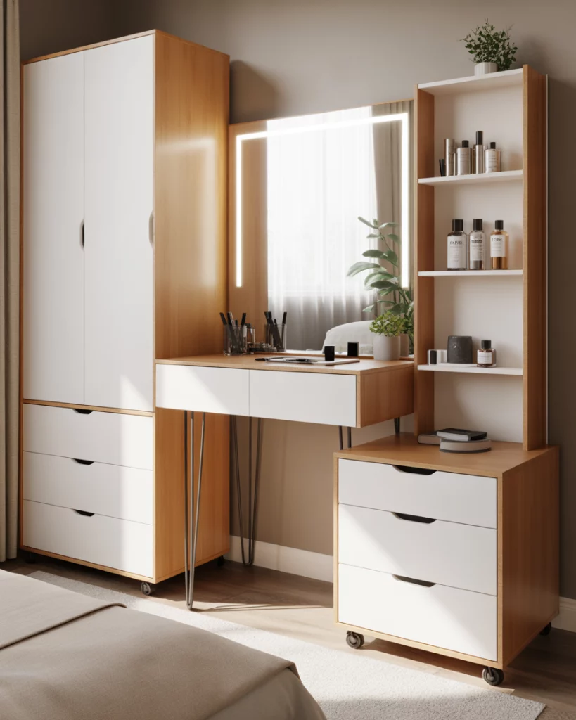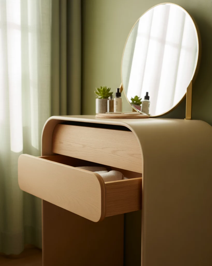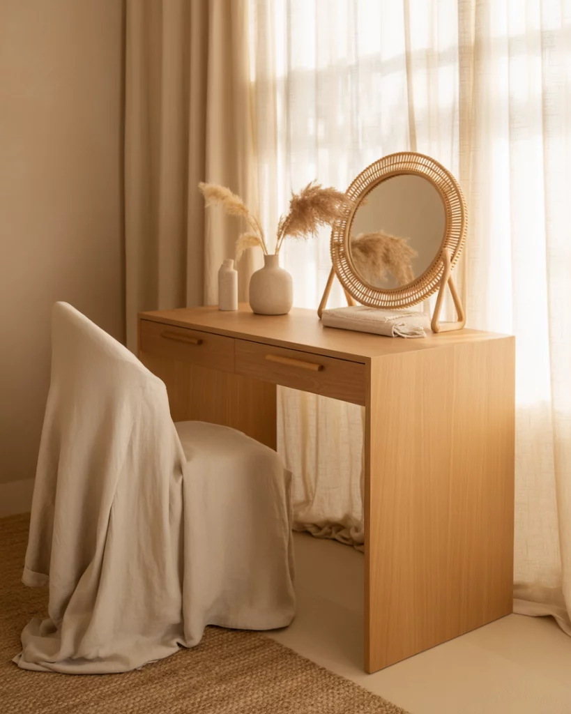 17. Scandinavian Cozy Vanity With Soft Wood Tones