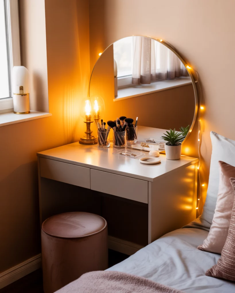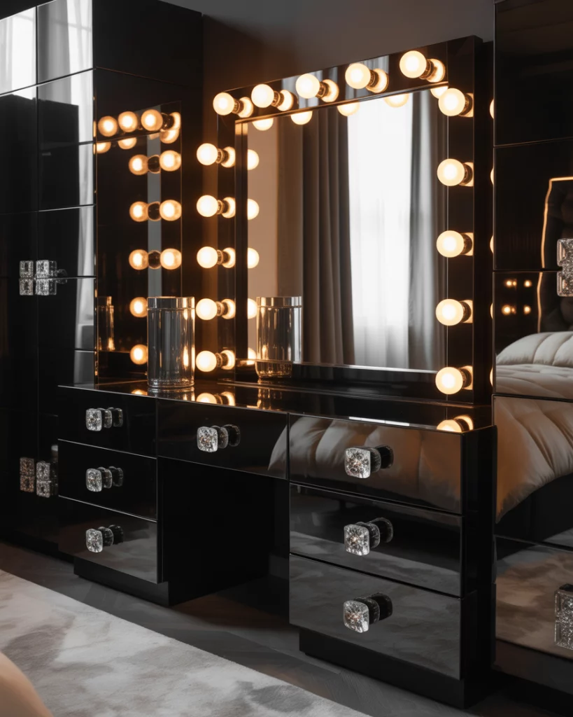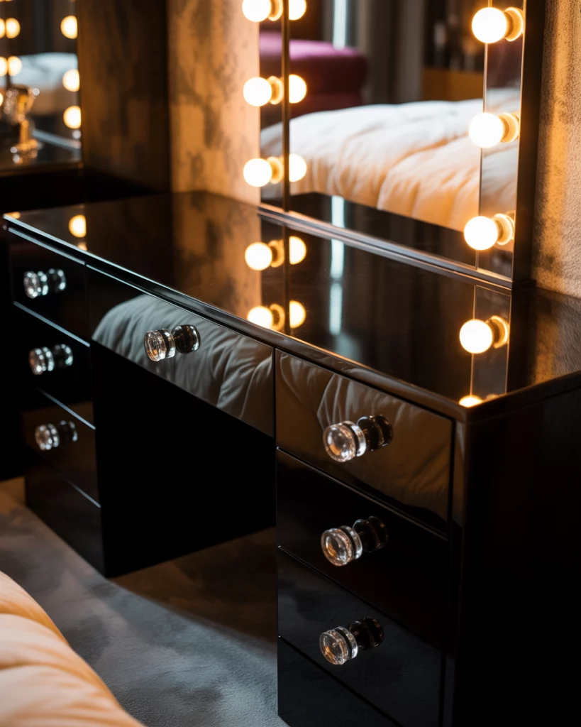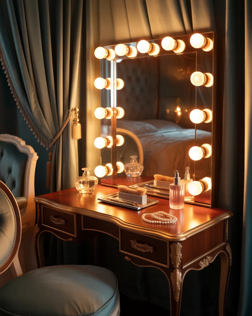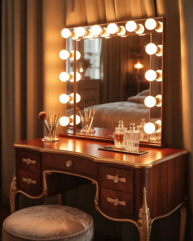 13. Vintage Hollywood-Inspired Glam Mirror Setup