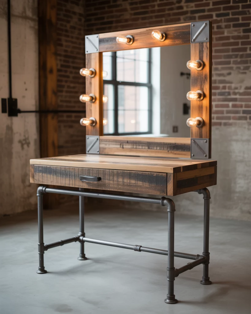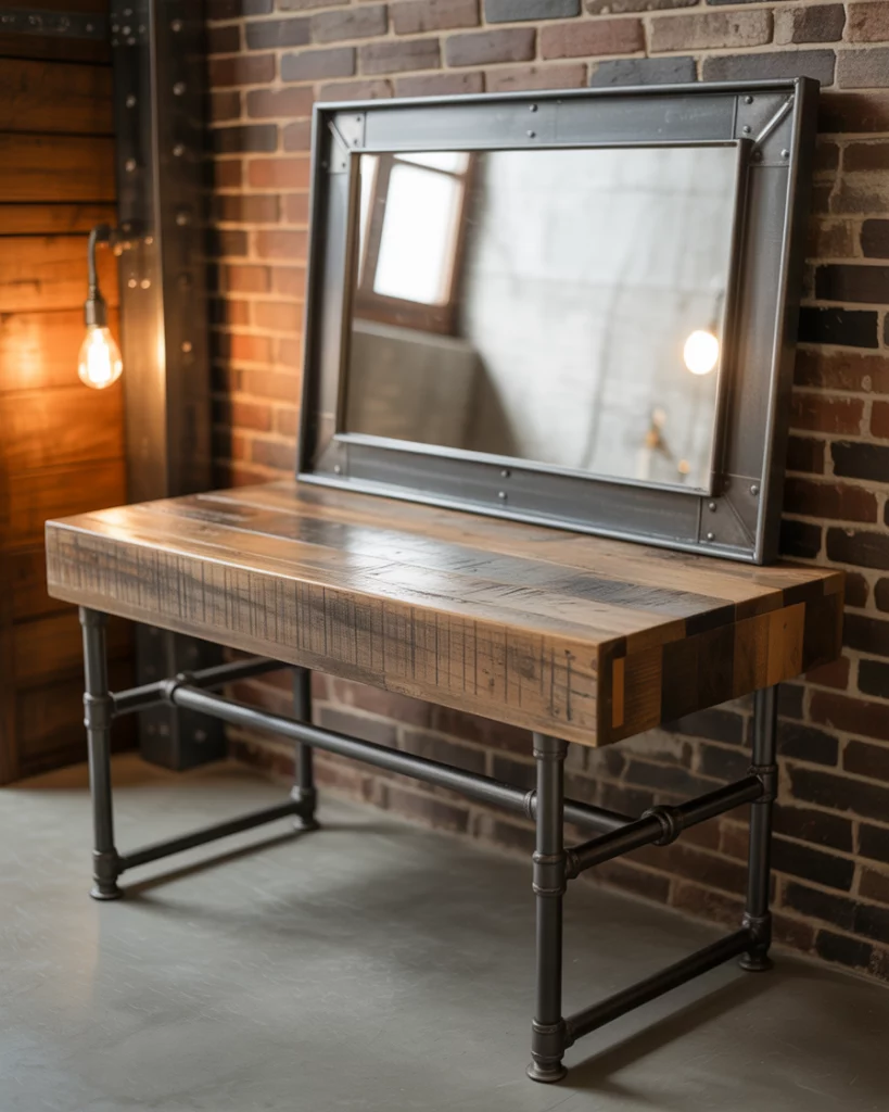 14. Industrial Wood-and-Metal Vanity for Urban Bedrooms