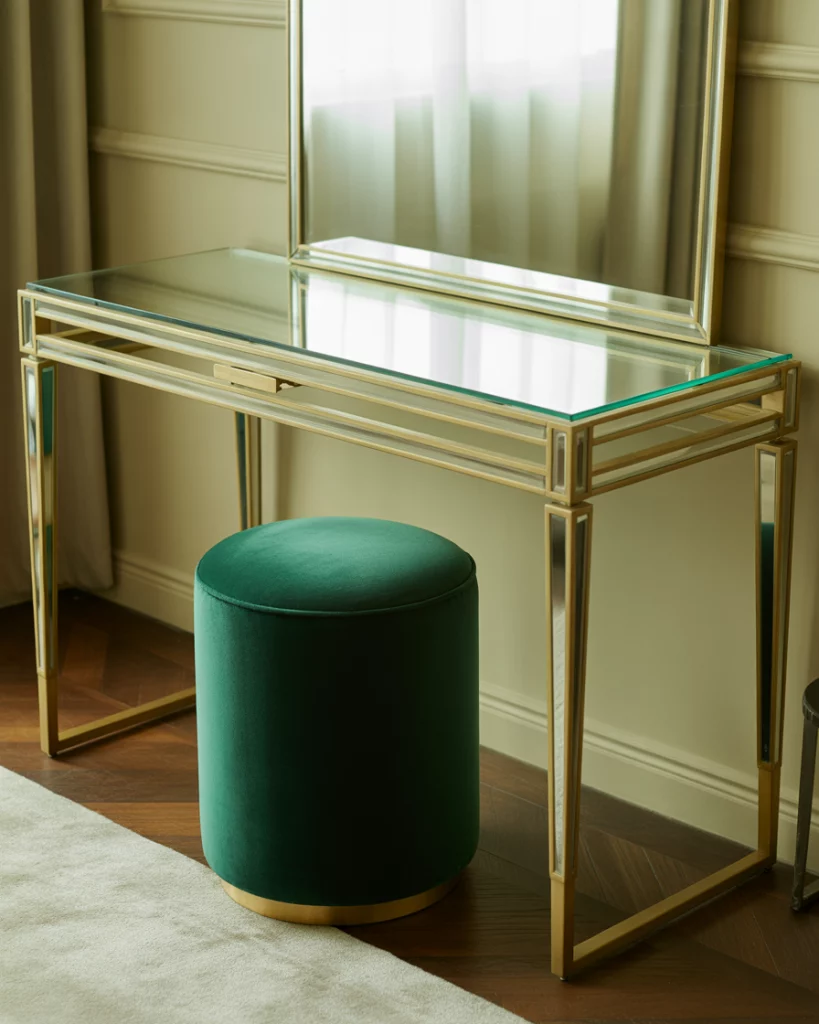 Nothing feels more 2026 than a modern luxury vanity with a glass top and metallic accents. When I stayed in a boutique hotel in Denver, this setup transformed my routine—gliding drawers, muted brass, and velvet stools made everyday makeup feel indulgent. It’s perfect for anyone wanting a classy, hotel-worthy corner without overwhelming the room. Think streamlined silhouettes and subtle glam.