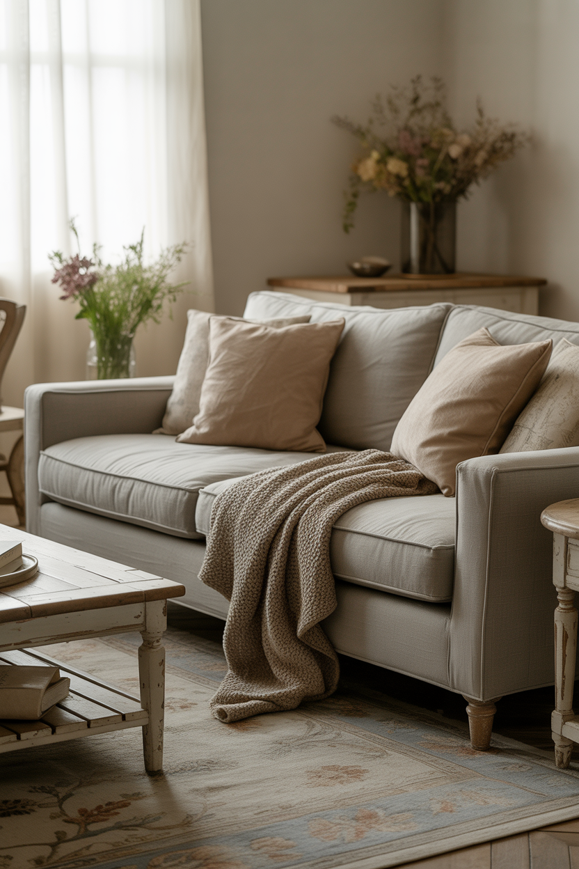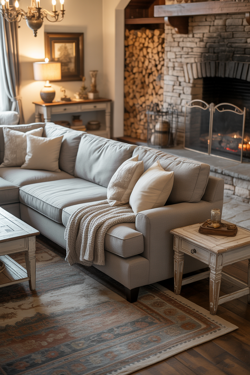 A farmhouse-inspired living room brings a sense of warmth and nostalgia with farmhouse paint in soft off-whites, light grays, and muted greens. This fashion is about natural textures wood furniture (scarcely set), throws, and antique furnishing. These should be combined with a neutral grey couch or beige couch to keep the rustic feeling going. Speaking of decorations, decorating the room with a patterned rug, softer lighting, and floral or checkered curtains will complete the impersonation to a farmhouse type of room. The goal is to evoke a cozy, lived-in feel while maintaining a fresh and airy ambiance.