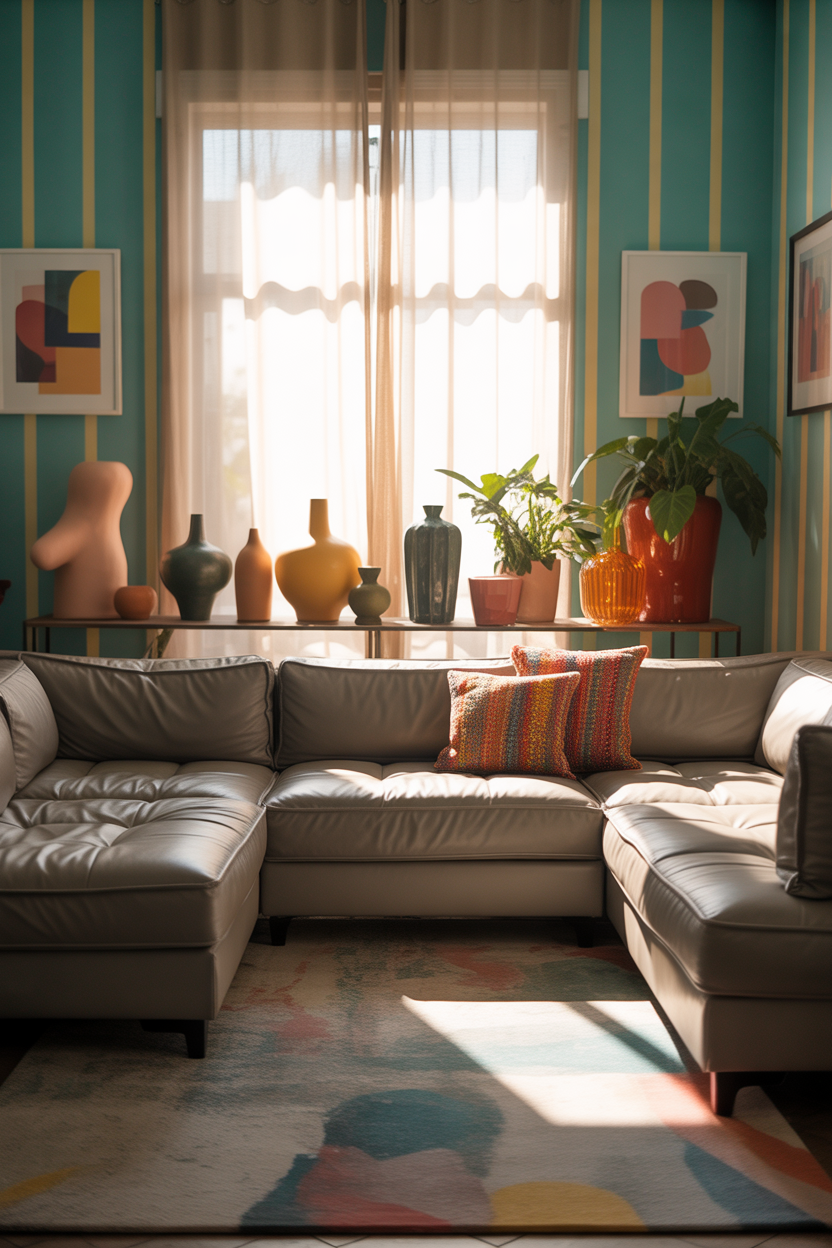 If you love art and want to integrate colorful elements into your living room, let your artwork take center stage. Paint the bold, abstract, or modern-art pieces on your walls and give them an opportunity to become the main color factor in the room. Match those with natural furniture like anti-pastel couch, like grey or beige couch and furnishments. Subtle tones on accent walls will also make sure that the art is making a statement and has become the highlight on that room. This approach allows you to inject personal style into your space without overwhelming the design.