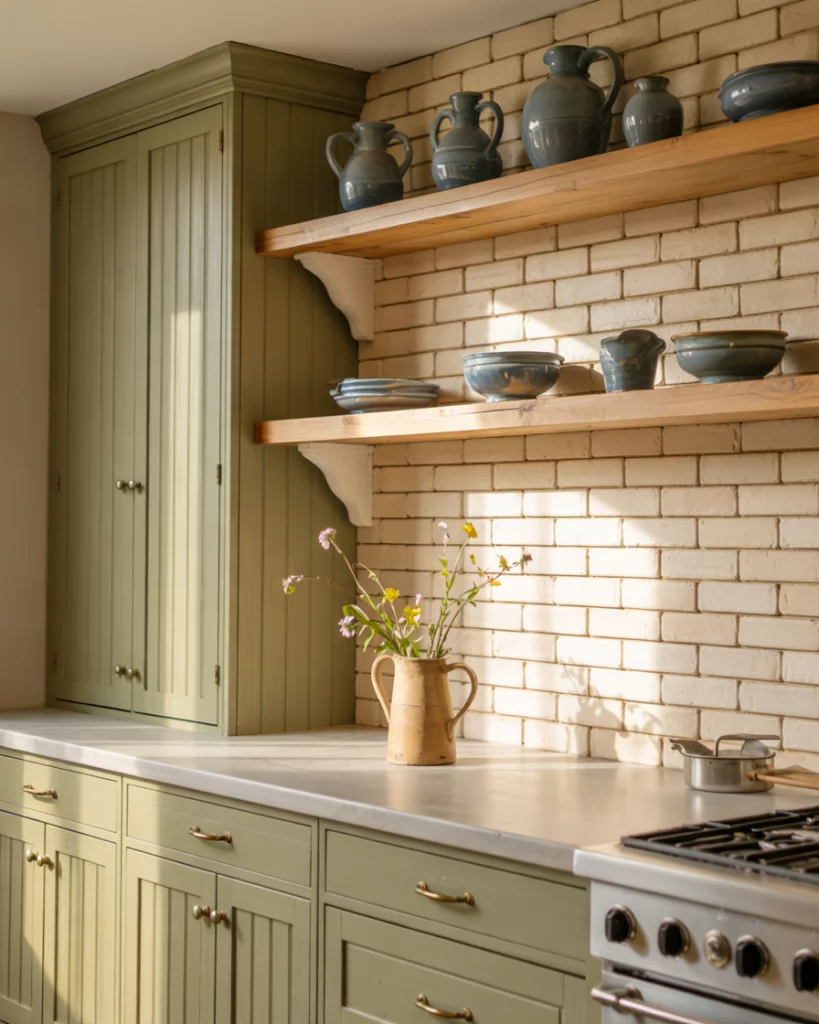 The pasture green color has become trendy in kitchens, as it brings serenity to the home environment while complementing a Western aesthetic. This can be combined with the warm touch of the ranch-style woods of the kitchen. Add blue pottery to create a contrast of flavor. This color combination will bring the desired effect of serenity in the kitchen without making the kitchen dull. This color scheme will work best in rooms receiving plenty of natural lighting. The color will be neither dull nor boring but serene.