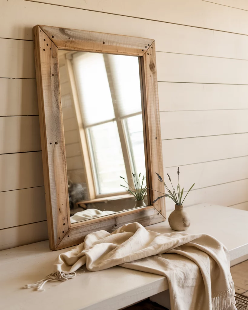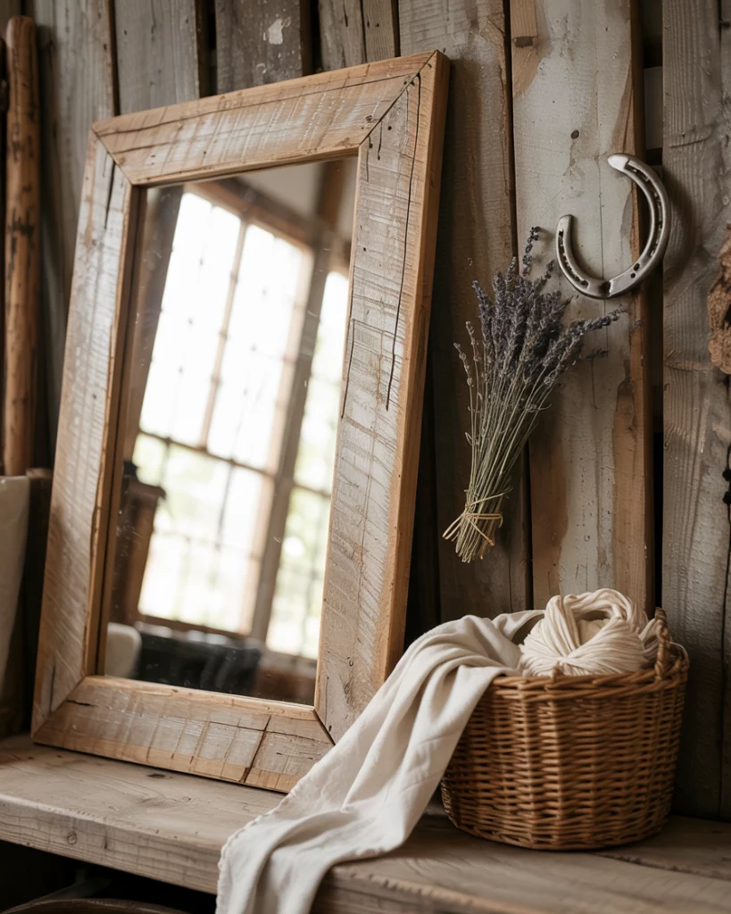 A wooden frame will add the desired touch of the Western home environment immediately when mounted inside the hallway and bedrooms. Mount a wooden-patterned mirror combined with the warm neutrals of the home furnishings, and add desired wooden elements to the home decor. The addition of a wooden-patterned mirror can bring the desired touch of serenity inside the ranch home’s bedroom environment. A short story: A homeowner from Colorado replaced the standard mirror of the home’s bedrooms with the timberframe-patterned one from the old cottage in the countryside. The result? The “whole bedroom felt like a lodge retreat.”