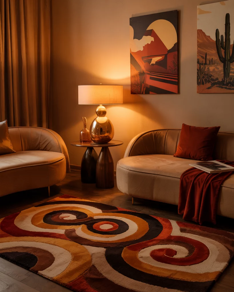 Bring the 70s back through bold patterns and shapes combined with amber glass and funky shapes. In Western home decor, bold patterns will perfectly combine punched print backgrounds with dark and earth-toned elements. A patterned rug in coordination with dark colors revamps the decor without straying from its home decor roots. Here’s the budget insider’s trick: Go treasure hunting in thrift shops to pick up old home decor items in the 70s Western frontier concept at a cheap price. Shop first for items composed of solid wood materials and old upholstery.