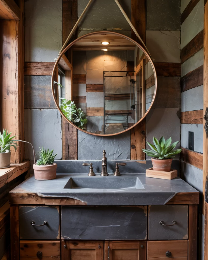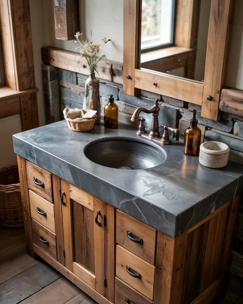 Natural stone is returning in a big way, especially in fireplaces, vanities, and cozy corners. Slate, limestone, or rough-cut stone blends beautifully with rustic beams and hammered metal. In a bathroom, river rock or dark stone can feel grounding, especially when paired with warm wood or soft linen textiles. These touches bring quiet elegance to modern spaces. This look thrives in cabins, mountain towns, and historic homes. Knowing “where it works best” helps prevent mismatched renovations and ensures the stone feels native to its environment.