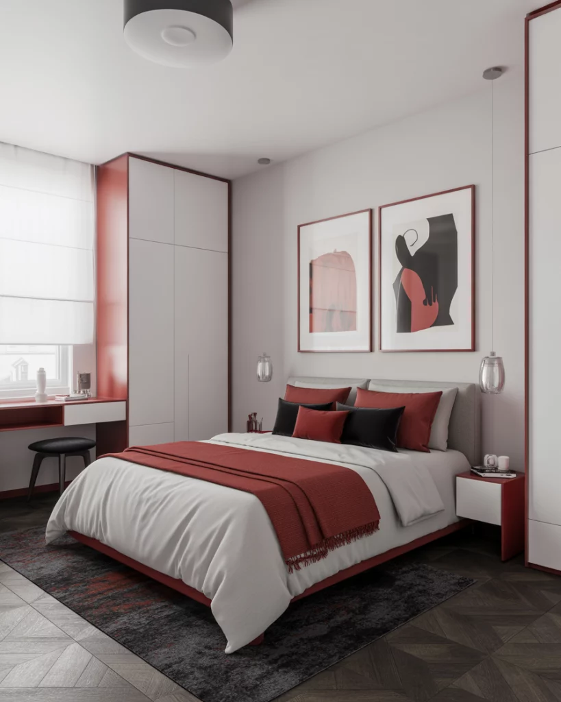 If you love dramatic visuals, mixing white with Red black accents gives a striking, urban atmosphere. This works well for teens or young creatives who want something energetic but not overwhelming. When I saw this combo in a Brooklyn loft, it felt daring yet surprisingly balanced.