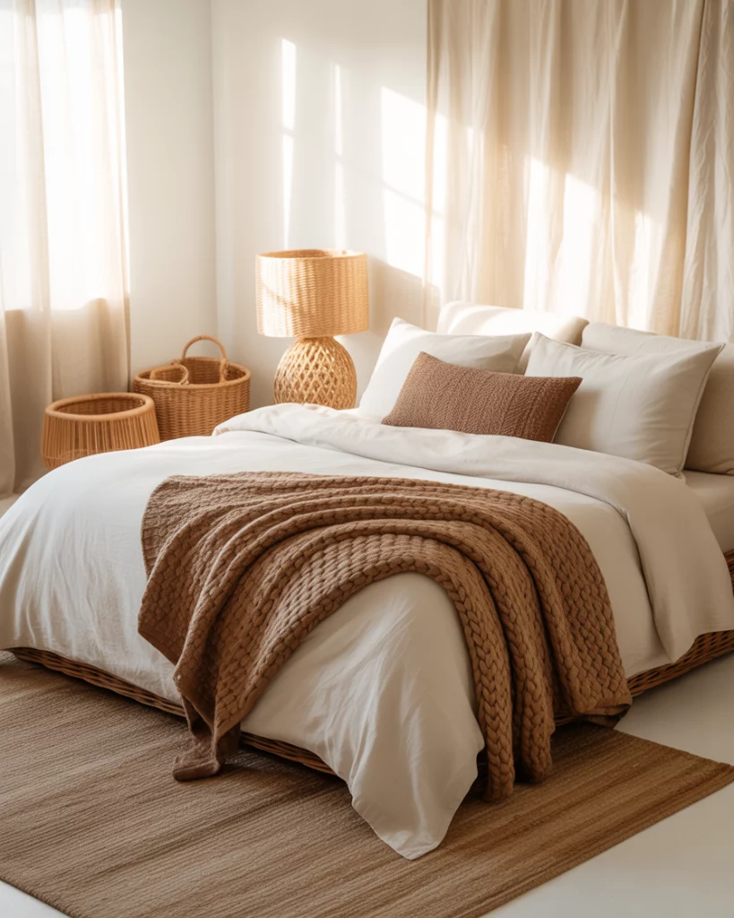 For a natural, grounded look, blend white walls with Brown and woven textures like rattan or linen. This combination adds quiet character while keeping everything breathable. I once added a woven pendant light to a white space and was amazed at how quickly it became more inviting and cozy.
