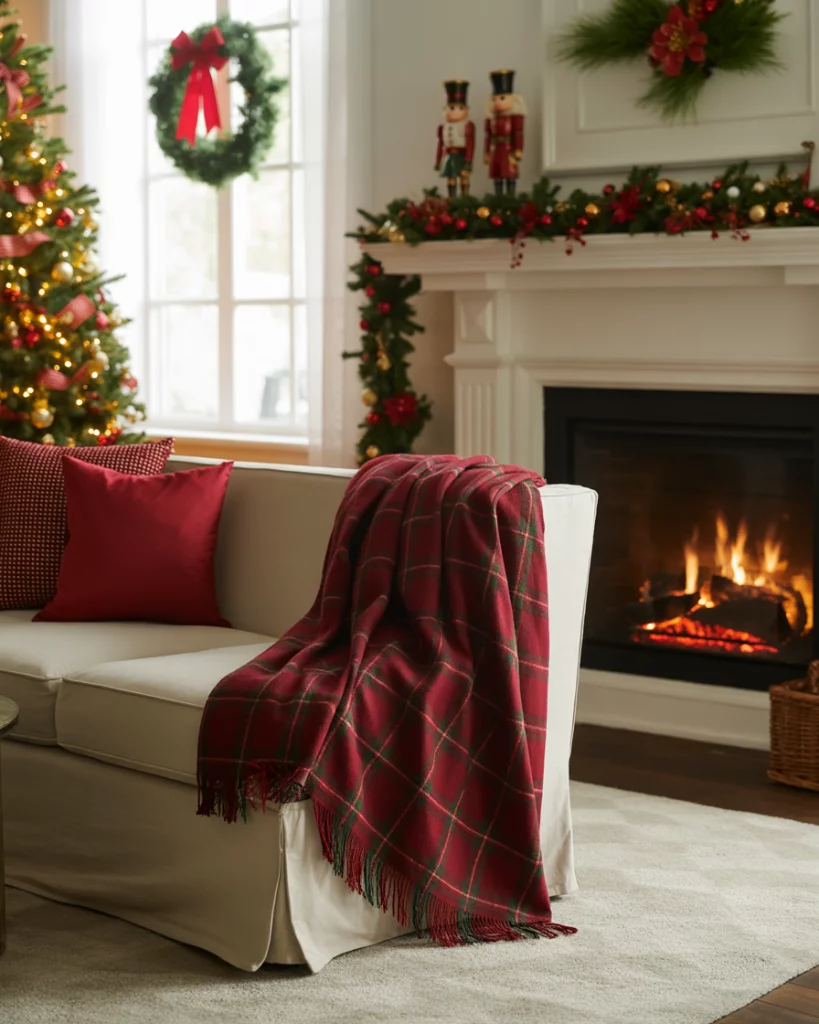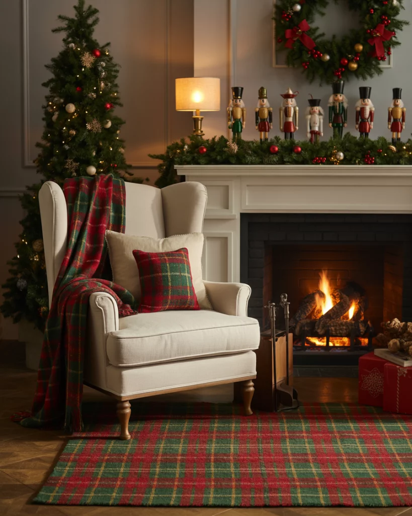 Red green and white remain the timeless trio of Christmas charm. A white-toned room brought to life with plaid cushions, evergreen garlands, and classic nutcrackers instantly feels festive yet familiar. Add touches of mixed metals for a modern edge while keeping the traditional heart of the look. This combination is perfect for living room setups that celebrate nostalgia with a refreshed spirit. Designers like Nate Berkus continue to embrace this approach for its balance of old and new.
