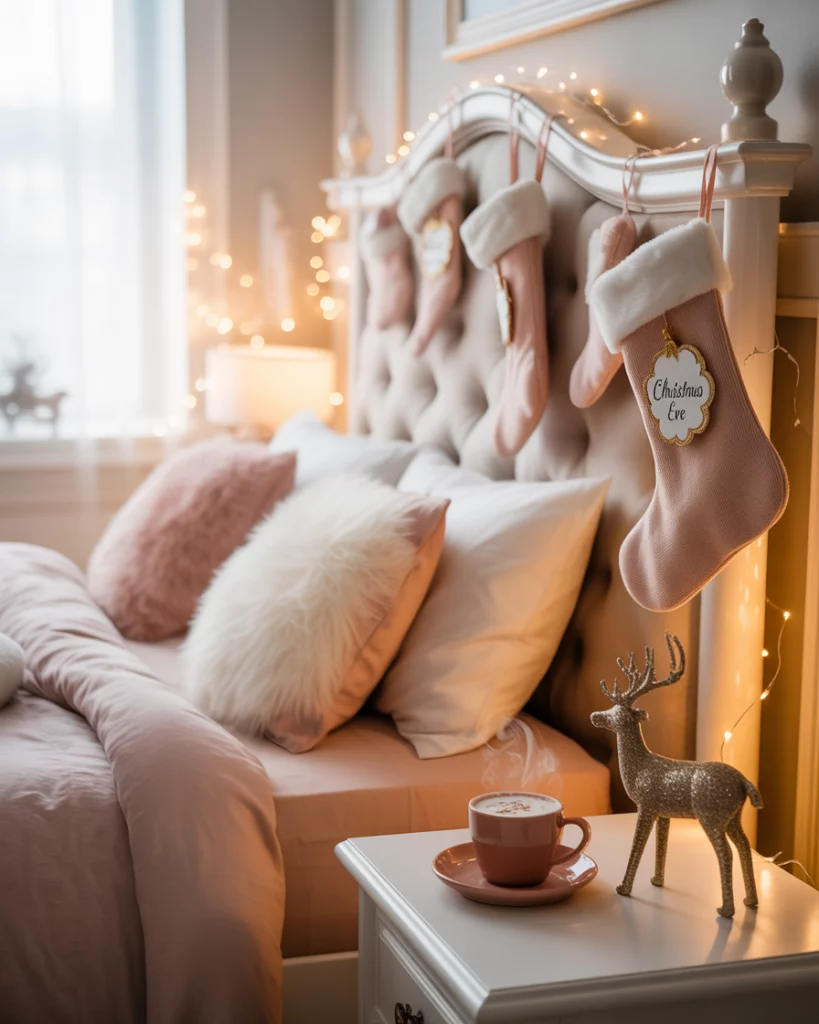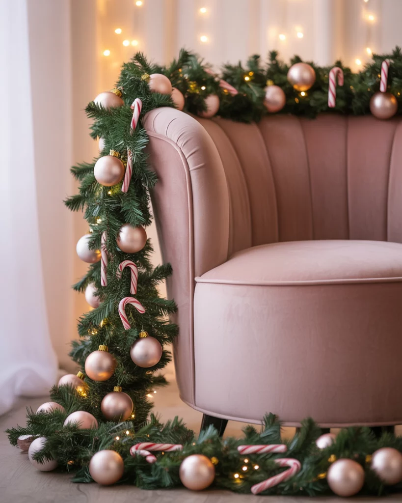 The pink and white palette is also playful and vintage. Imagine candy canes, blush garlands, and sparkly baubles on a white flocked tree. Include pink red decorations such as rose coloured ribbon or velvet pillows to create a cute but sophisticated design. This is very effective in a classroom or bedroom setting. Influencers such as Liz Marie Galvan love it due to its sweet and nostalgic ingredient.