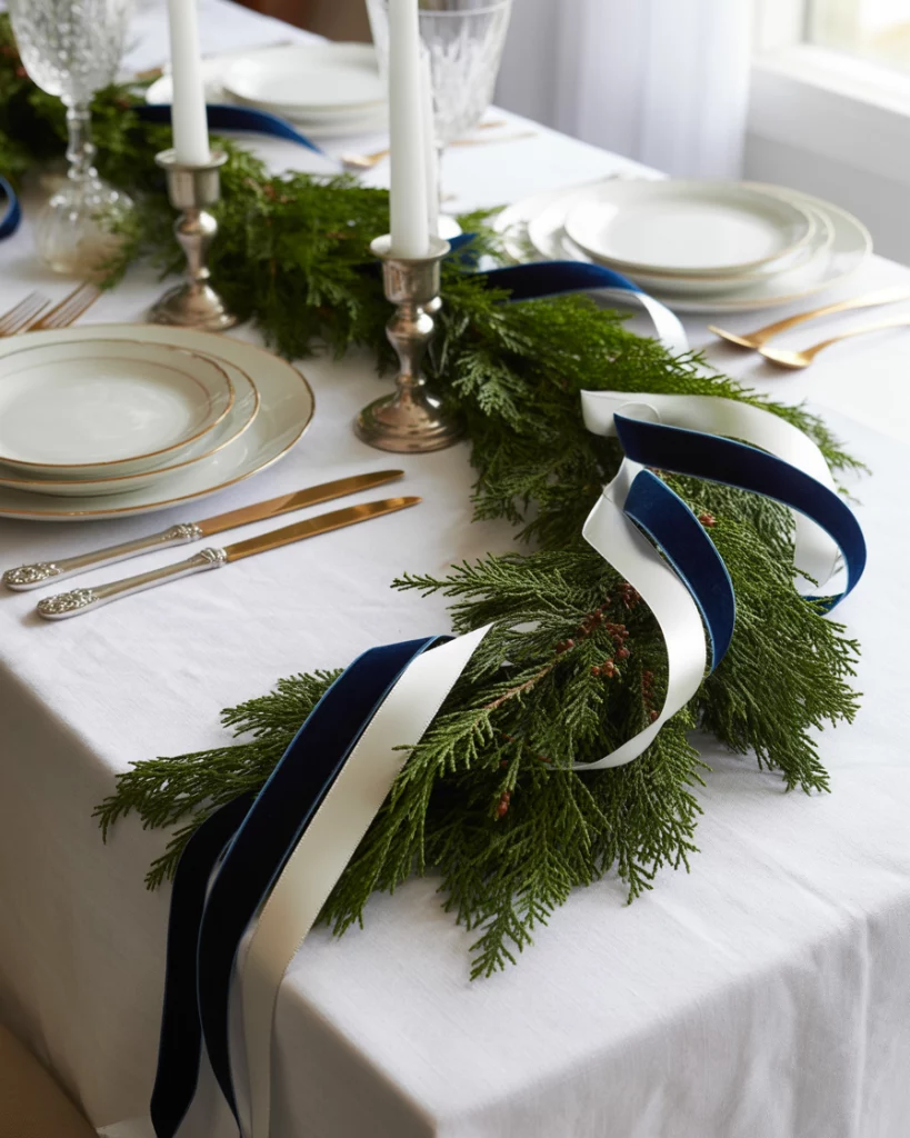 White and green are naturalistic and calm and down-to-earth. Combine white ceramics and linens with pine garlands, green gold candelabras and real or fake evergreens. This appearance is best suited to the dining table or the living room where the texture is of the essence. Take pinecones, moss and eucalyptus. It is a theme that is complementary to rustic design as on The Spruce 2025 trend projections.