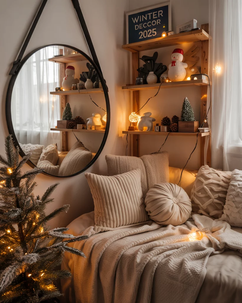 Winter decorating is a great time for repurposed style, especially for small spaces. An old ladder can become a blanket rack, while crates serve as rustic shelving. These touches add charm for the home rustic aesthetic, proving that decorating doesn’t require overspending. Plus, reusing items is eco-friendly and makes your home truly unique. Many designers now highlight this trend as both practical and stylish.