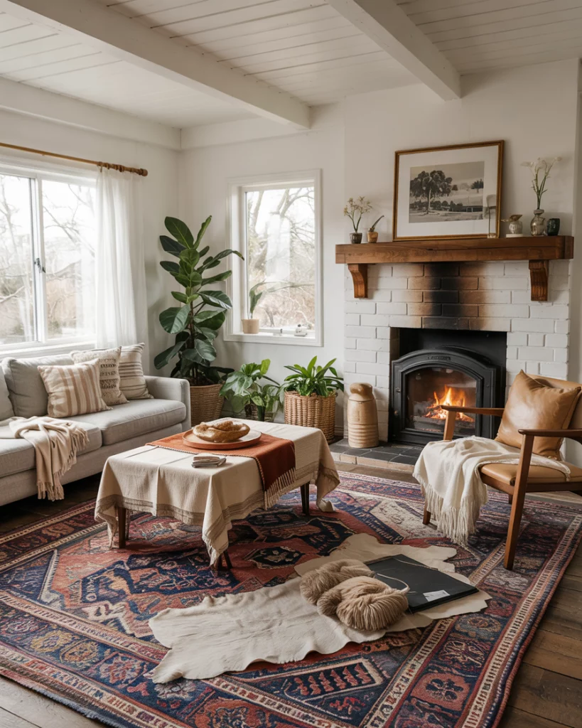 Say layering rugs, and you instantly describe the home cozy: consider wool in neutral tones layered with small vintage ones or with a piece of faux fur. Such a concept goes well for the home, for fireplaces, and even for small spaces, all sites where warmth and visual appeal are essential. The mixture of textures brings another layer of depth and comfort to everyday living. It is also a neat little trick for apartment living where floors tend to get really cold underneath!
