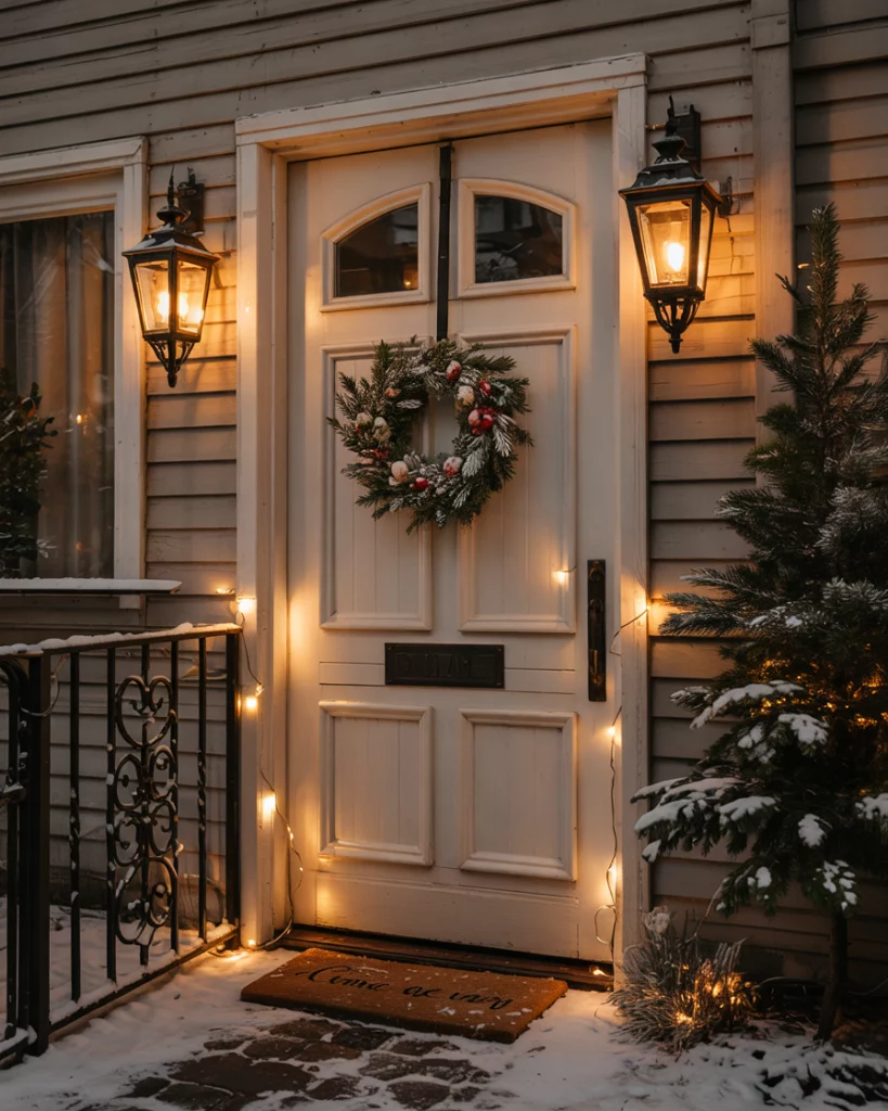 Lighting turns the long winter nights into magic. Soft lamps, lanterns, and fairy lights transform the entrance and small porch into a welcoming spot. This notion maps the way for both entrance and small porch set-up, throwing charm right at the doorstep. The addition of layered candles or LED lanterns brings proper safety with style to this often overlooked space, transforming it into a highlight of the season.