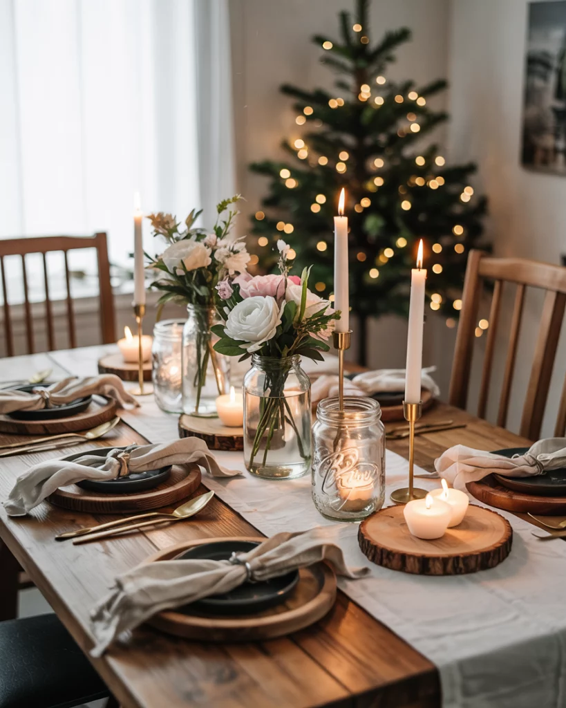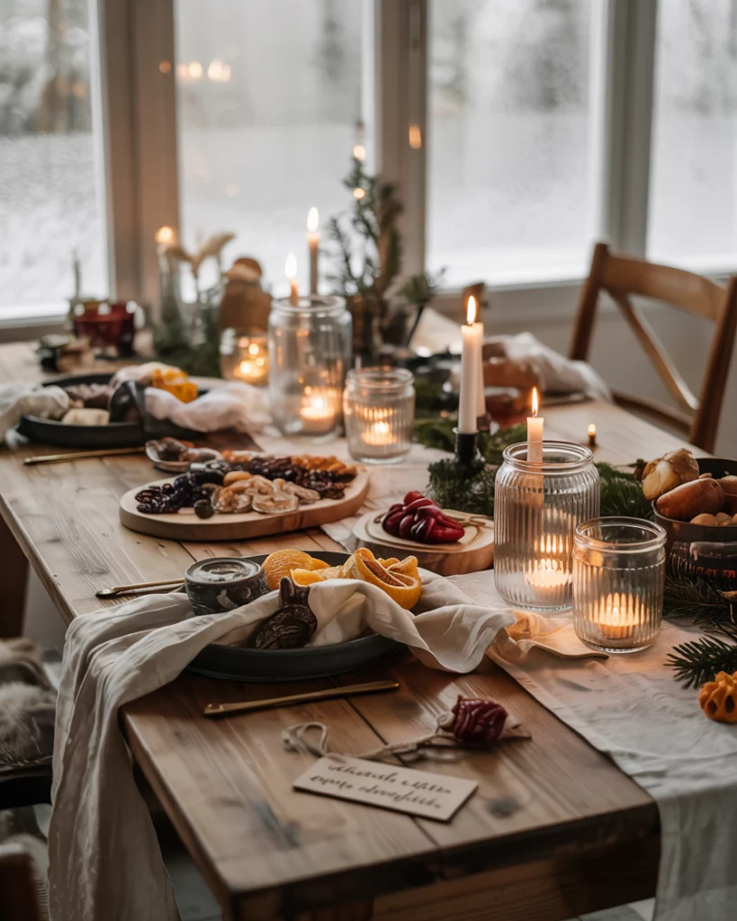 Holiday entertaining calls for creative table displays. Repurposed jars used as candle holders, vintage linen, or wooden boards for serving give that special home rustic charm. It is perfect not only in the living room but also in the fireplace area where gatherings happen. It is proof that dining festive can be cheap and unique without losing grace.