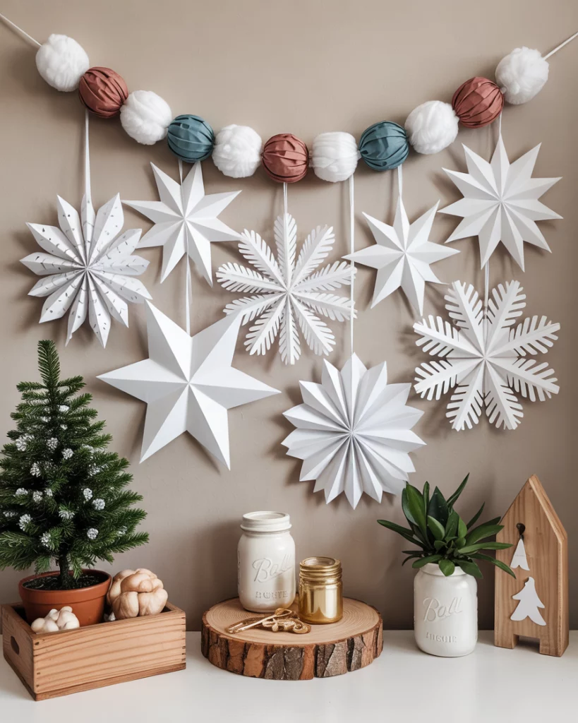 Don’t let décor stop at home: winter crafts for a school or a kindergarten classroom can toe the line between functional and festive. Paper snowflakes from recycled paper, lanterns from repurposed jars, and garlands made from cotton balls bring a touch of Christmas magic to the learning environments. Such projects keep kids engaged and warm those spaces, all while staying cleverly within a budget.